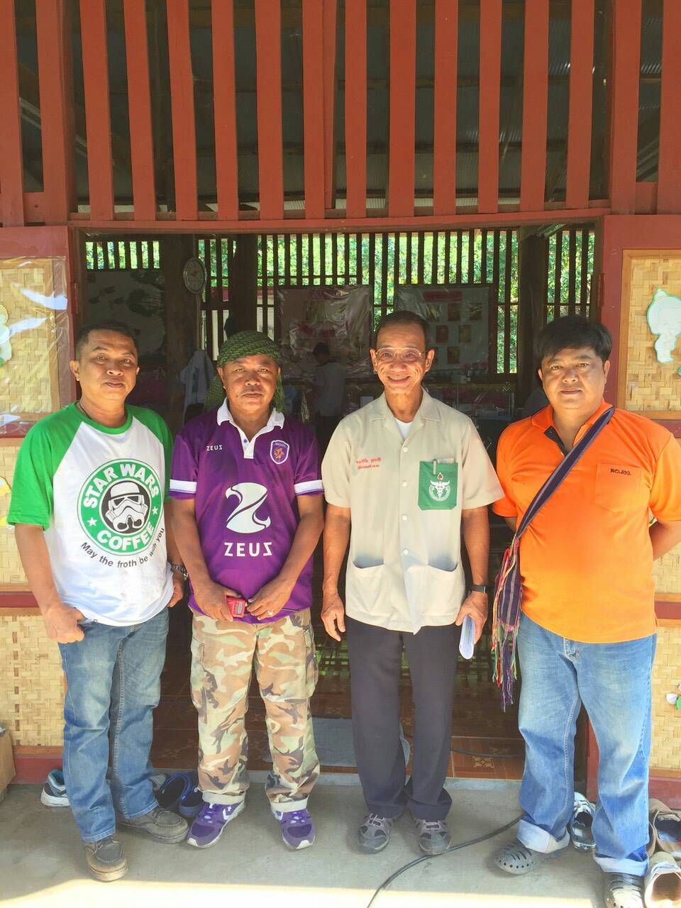 ถ่ายรูปหมู่ร่วมกับครูใหญ่โรงเรียนบ้านน้ำหอม ( เสื้อม่วง)