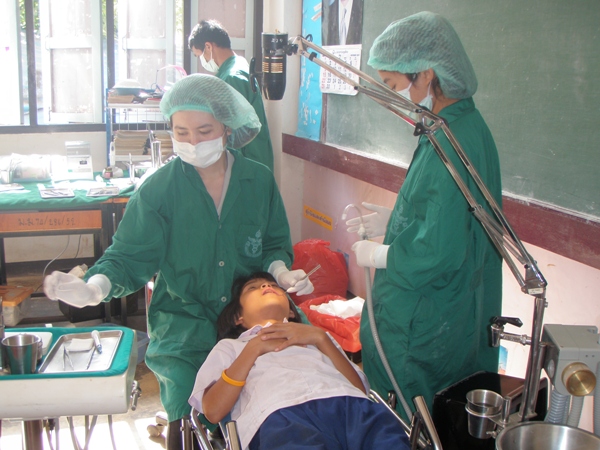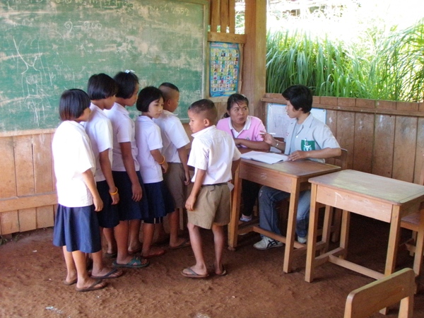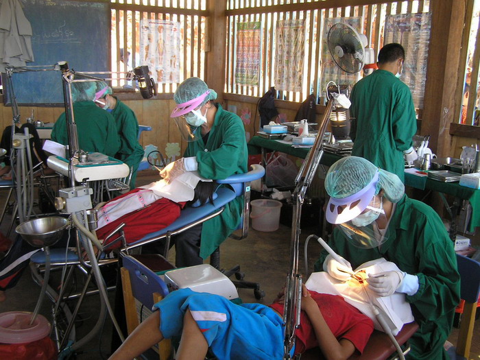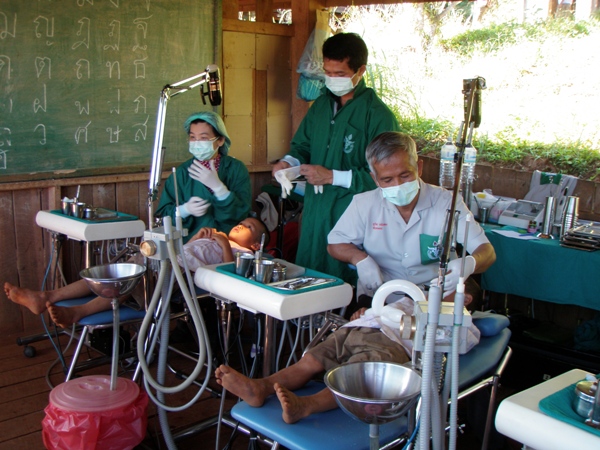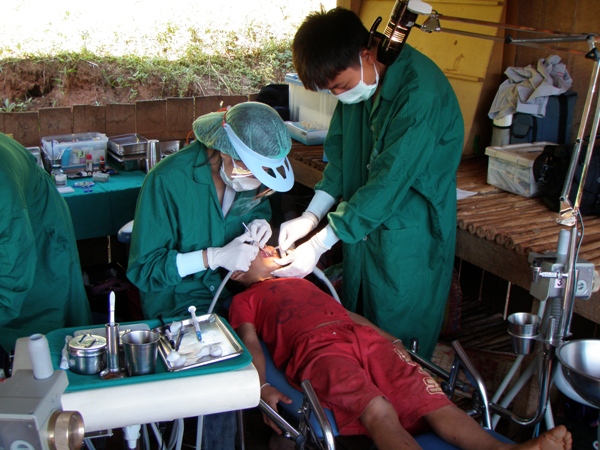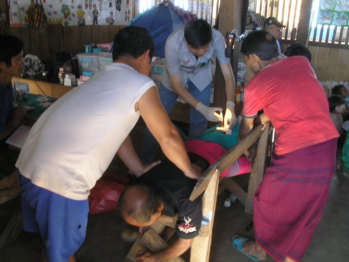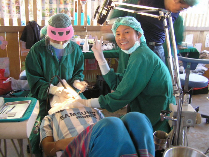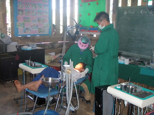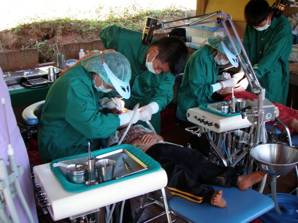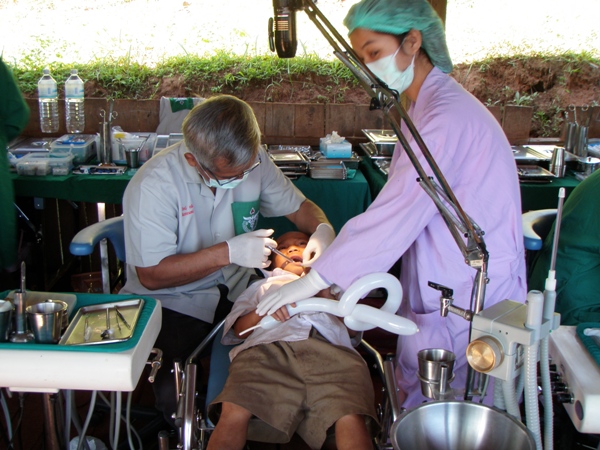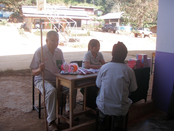 ช่วยงานต่างๆ จัดคิว แกยาสีฟัน แปลง และประสานงานชาวบ้าน