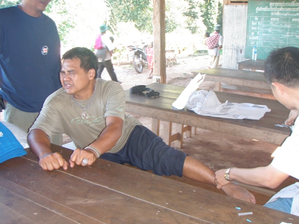 คุณหมอ พัลลภจัดการกับฝีที่ขาของชาวบ้าน ผ่าสดครับ