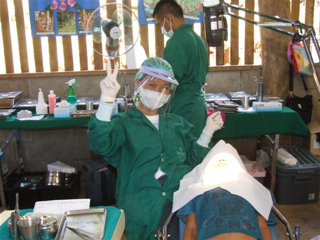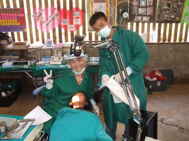 รถทันตกรรมและคุณหมอทั้งคณะพักนอนที่ โรงเรียนตะโป๊ะปู่ตลอดทริป