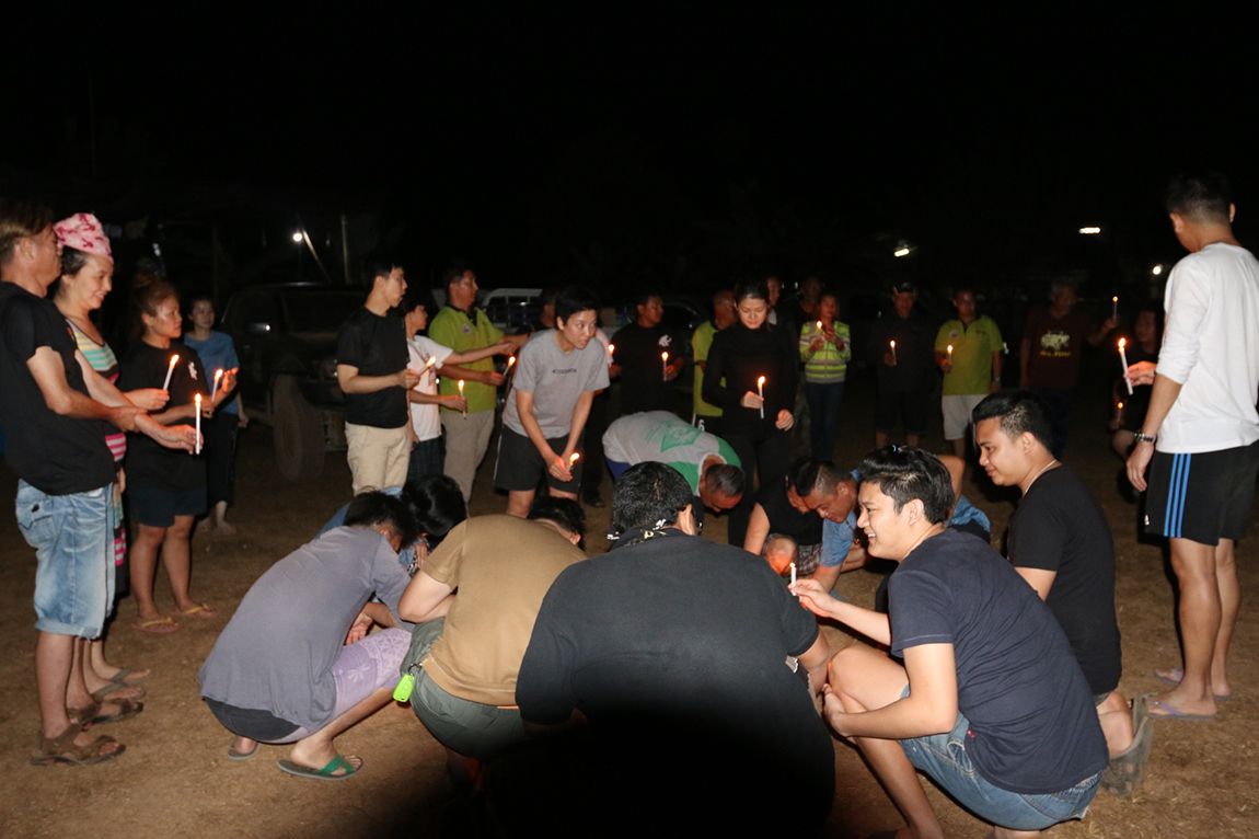 คืนแรกมีจุดเทียนถวายสักการะน้อมรำลึกถึงพระมหากรุณาธิคุณและร้องเพลงสรรเสริญพระบารมี