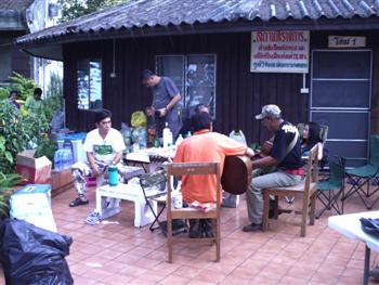 ตกเย็น...เลิกงานก็สังสันต์หน้าบ้านที่พัก ดนตรีบรรเลงโดย อ.ชัย (เจ้าเก่า)