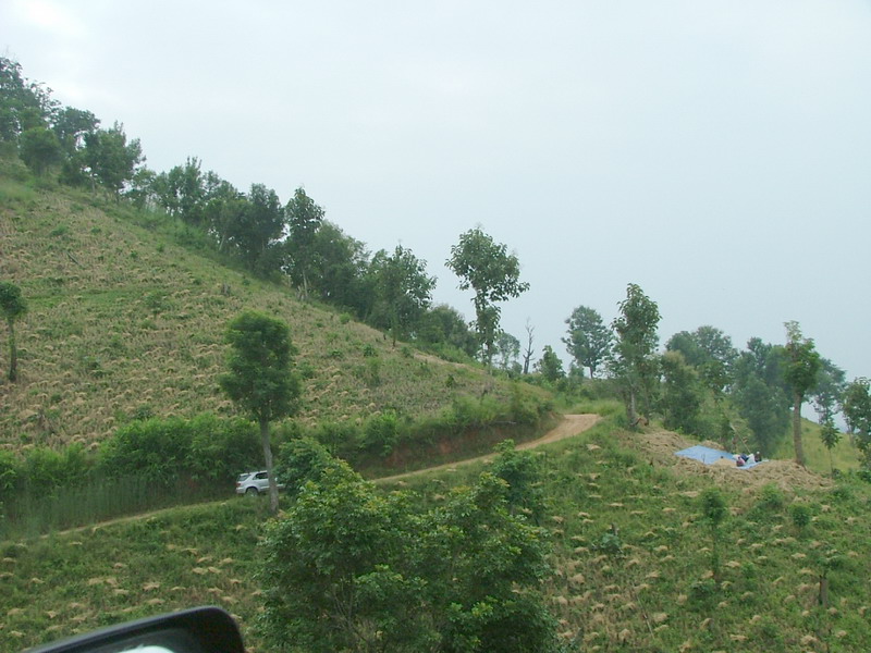 ในรูปจะเห็นชาวกะเหรี่ยงเกี่ยวข้าวกองไว้เป็นหย่อมๆ เมื่อเคลื่อนรถเข้าไปใกล้ก็ให้สงสัยว่าเวลาที่พวกเขาลงมือเกี่ยวข้าวเนี่ยไม่กลัวกลิ้งหลุนๆตกเขาไปหรอกหรือ เพราะมองดูแล้วชันมากๆ