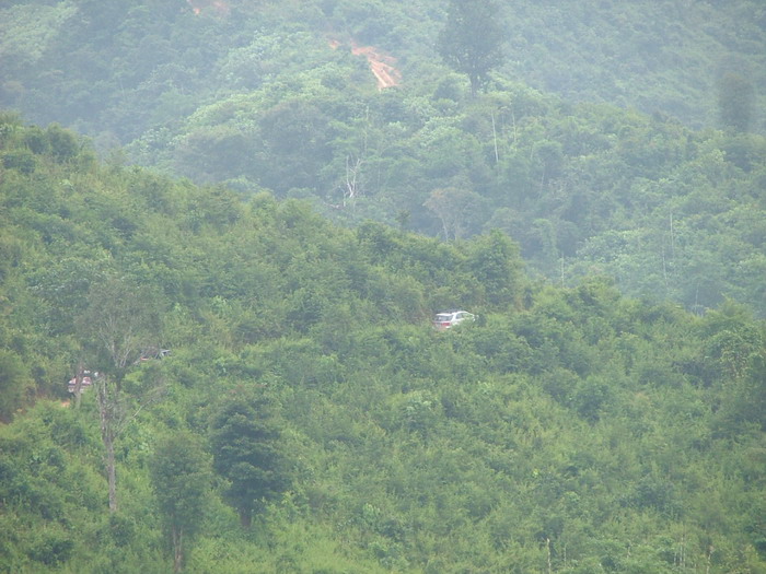 เห็นรถหมอและรถเครื่องมือผลุบๆโผล่ๆตามแนวป่าข้างทาง