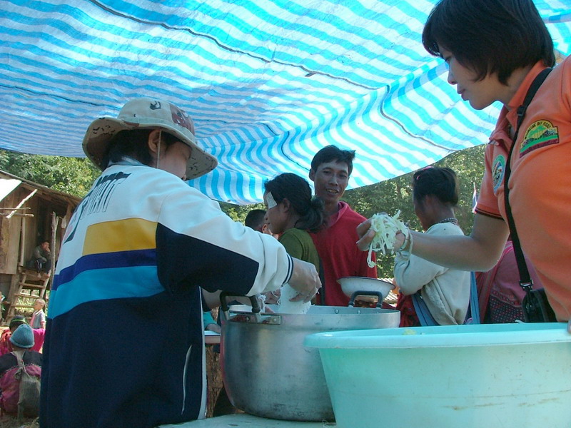 เช่นเคยด้วยน้ำใจแสนงามพี่อู๊ดประธานเมืองตากออฟโรดกางผ้าใบตั้งโต๊ะเตรียมมื้อกลางวันเลี้ยงชาวบ้านดูบลอคี