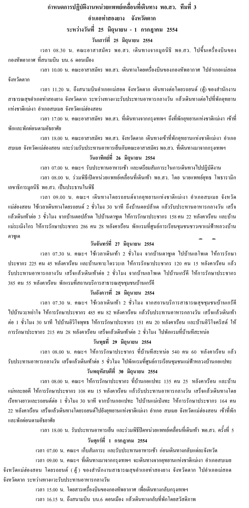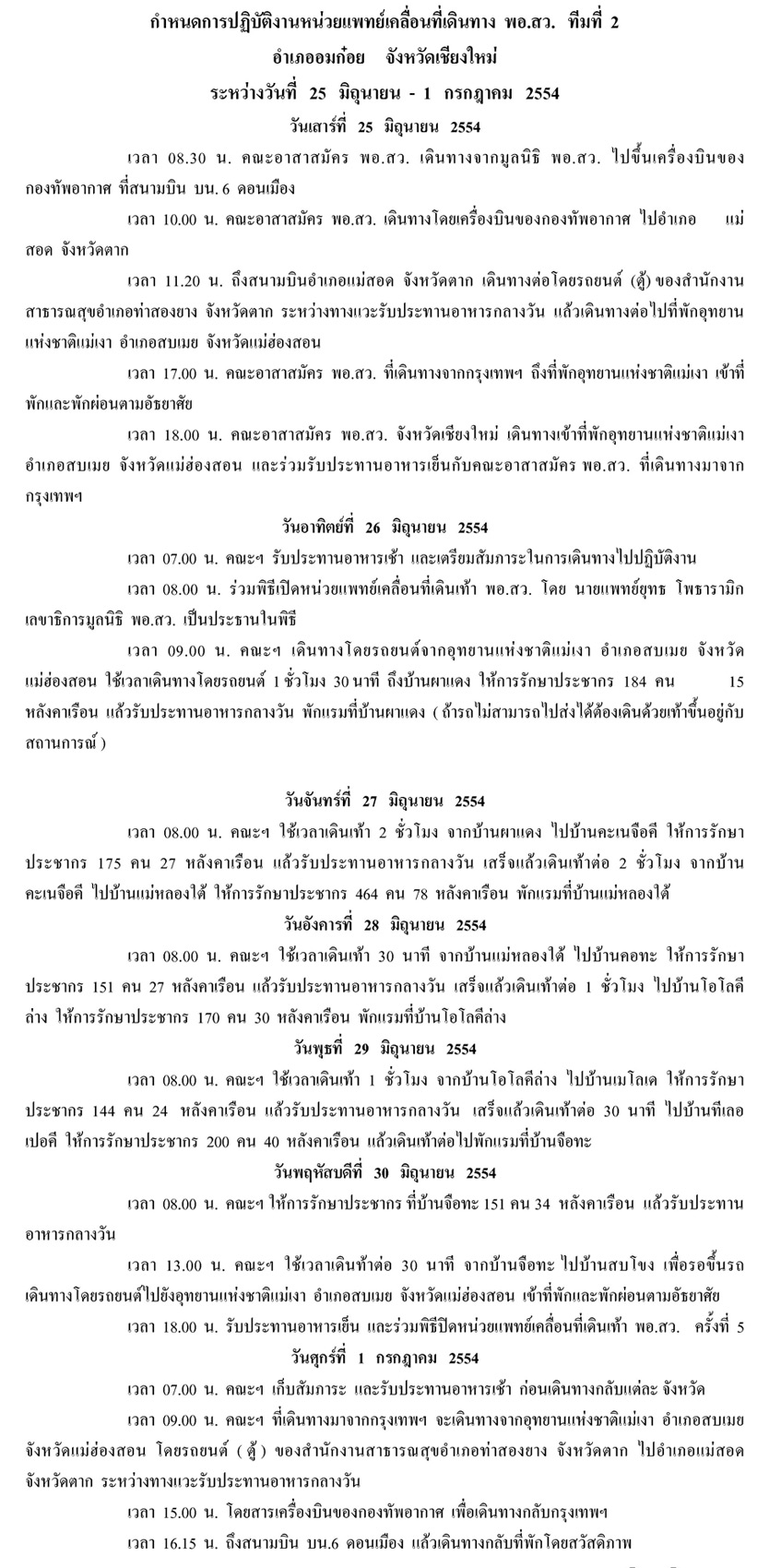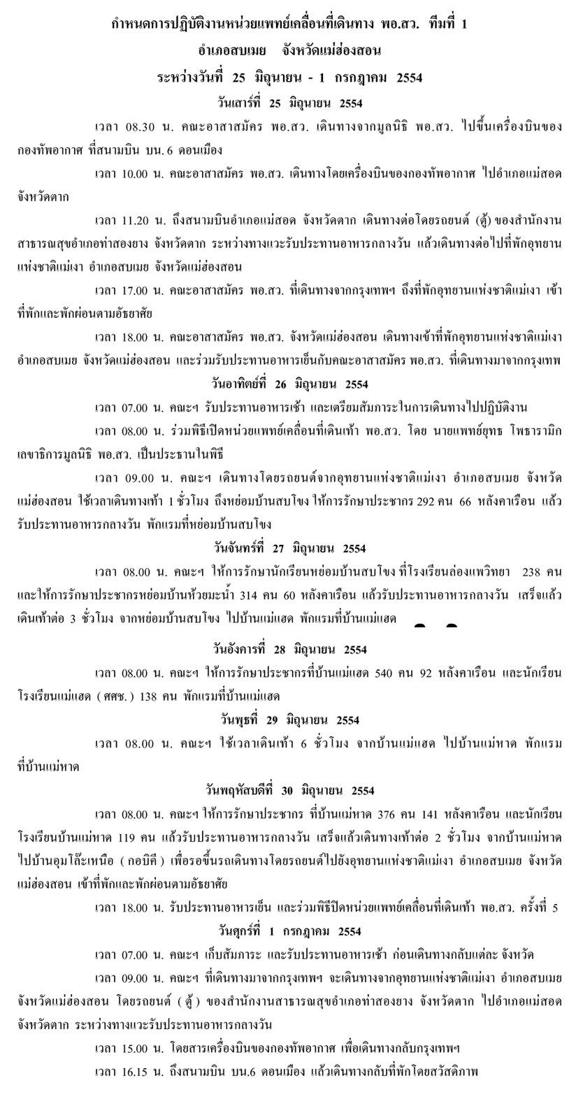 1. ออฟโรดที่เข้าร่วมงานขาไปส่ง รับคณะหมอที่สนามบินแม่สอด เช้า 11.20 น. ให้หมอนั่งรถออฟโรดทุกคน เนื่องรถตู้ตามแผนเดิมไม่สามารถไปได้ในถนนบางช่วง