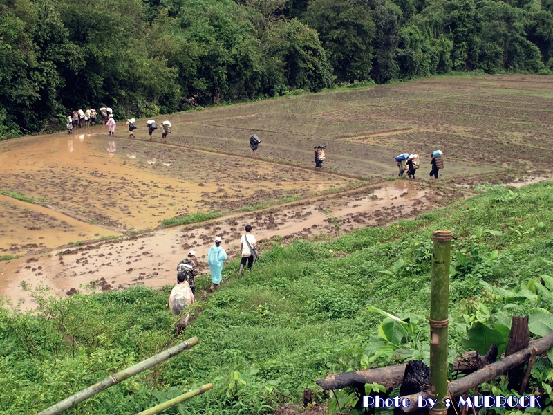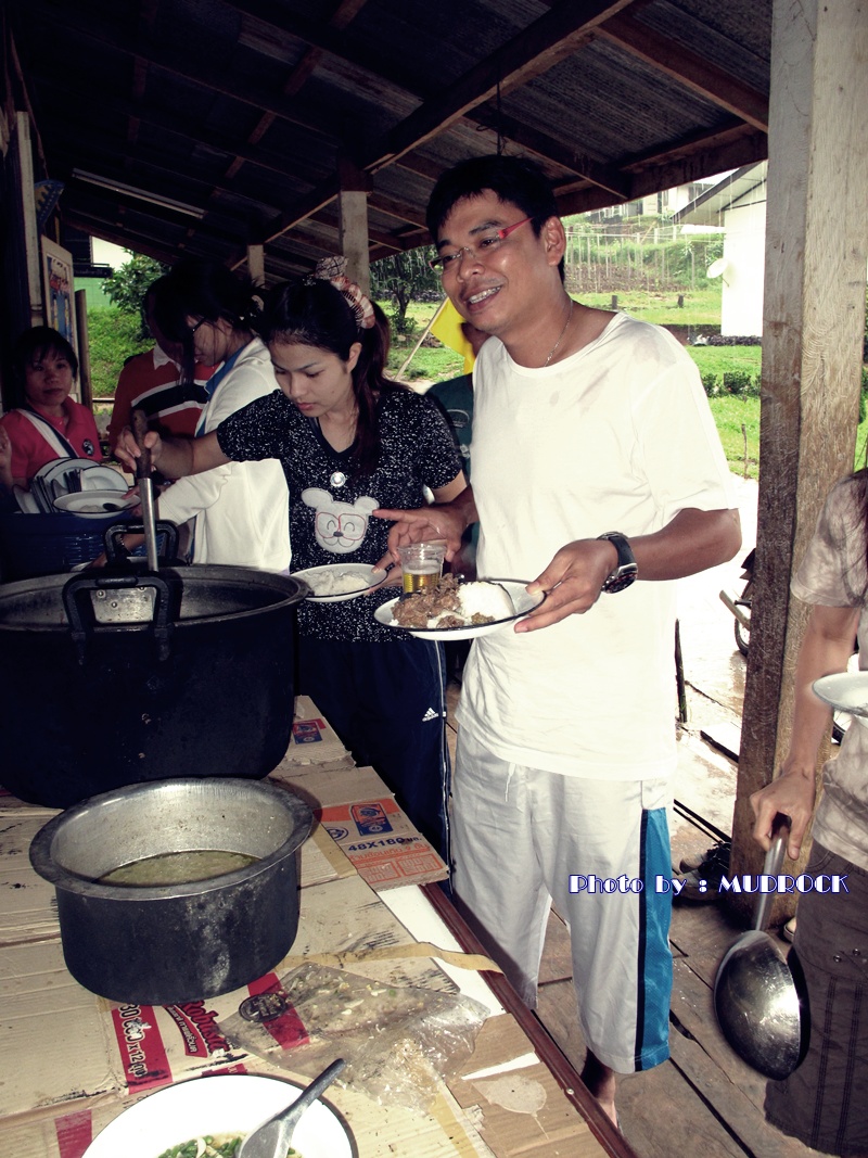 หลังจาก รับประทานอาหาร กลางวัน เสร็จ แผนเปลี่ยนใหม่หมด ซึ่งตามปกติ จะวันสุดท้ายจะต้องออก มารอรถยนต์ ของคณะ ออฟโรดมารับ ที่บ้านสบโขง แต่แผนเปลี่ยน เดินเท้าทะลุ ไปบ้านราชา เขตอมก๋อย ซึ่งเป็นคนละฟากกัน ทำให้ัั กระผมต้องเปลี่ยนแผนเช่นกัน เพื่อเดินทางมาเอารถที่ทิ้งไว้ที่บ้านอุ้มโล๊ะ จำต้องแยกย้าย กับสาย ที่ 2 เพื่อสมทบ กับสายที่ 1 ที่บ้านสบโขง ภาพนี้เป็นภาพสุดท้าย ของสายที่ 2 ก่อน จะ เดินข้าม น้ำโขง เพื่อเดินทาง ไปบ้าน จือทะ