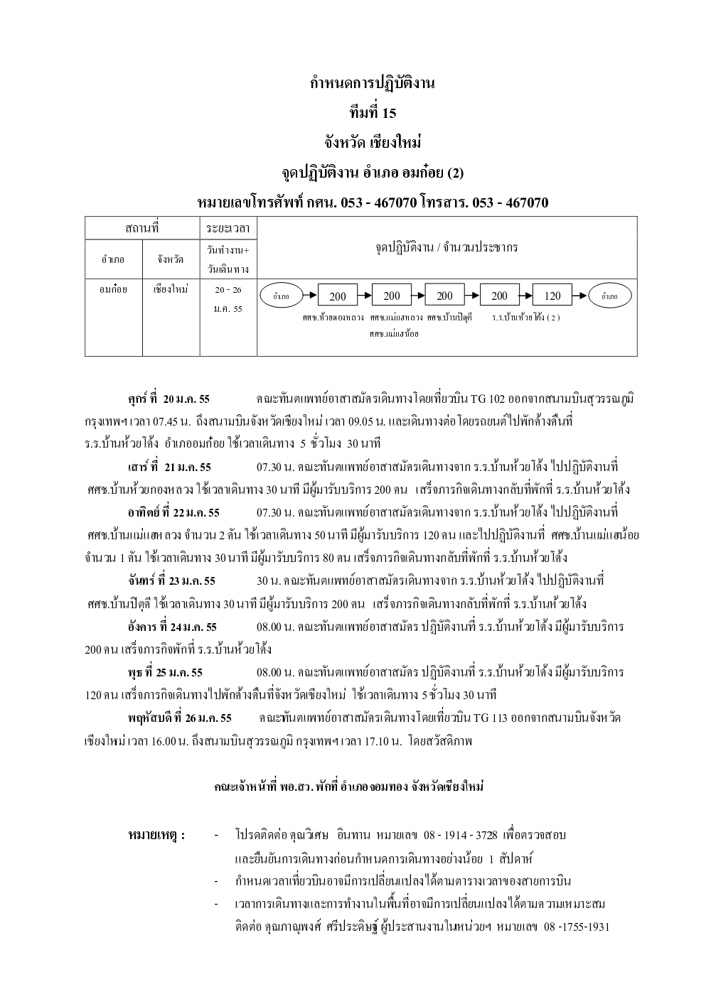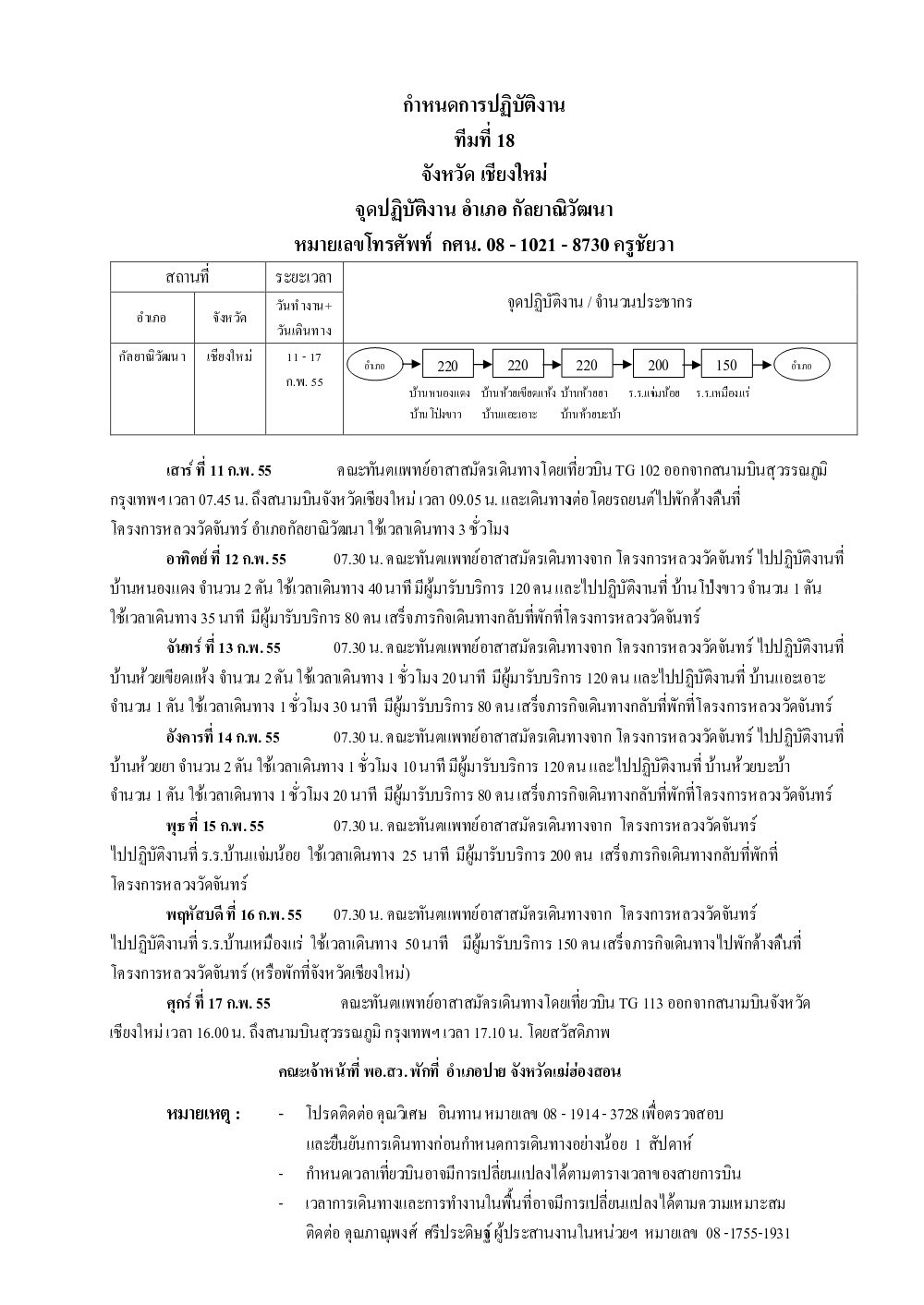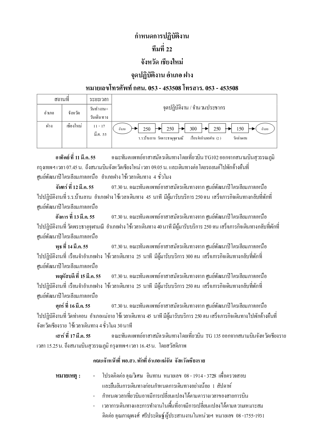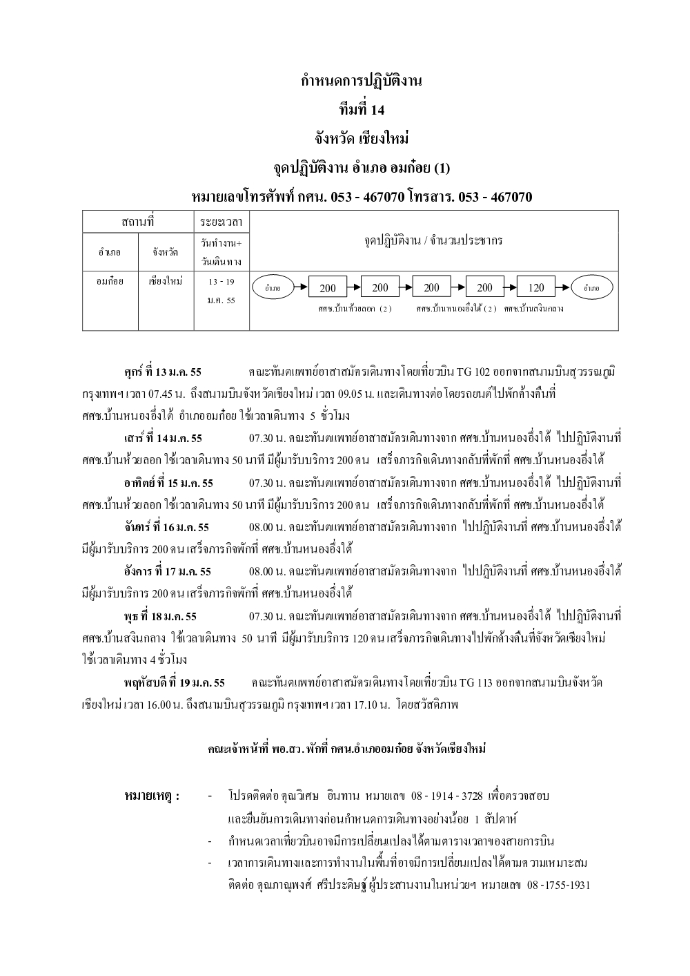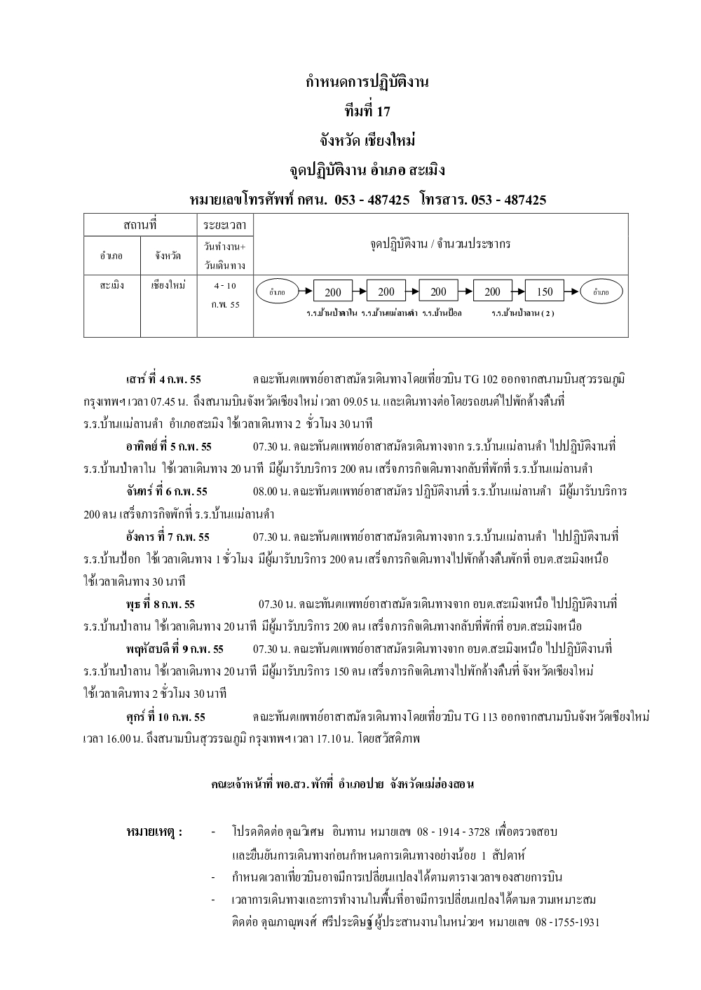หมายเหตุ แผนปฏิบัติงานอาจมีการเปลี่ยนแปลง ตามความเหมาะสม