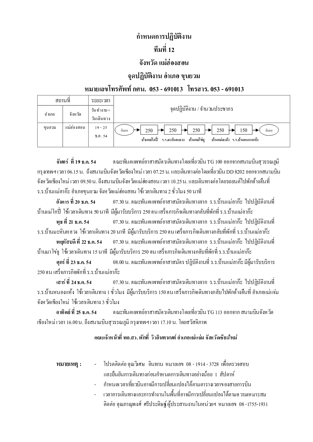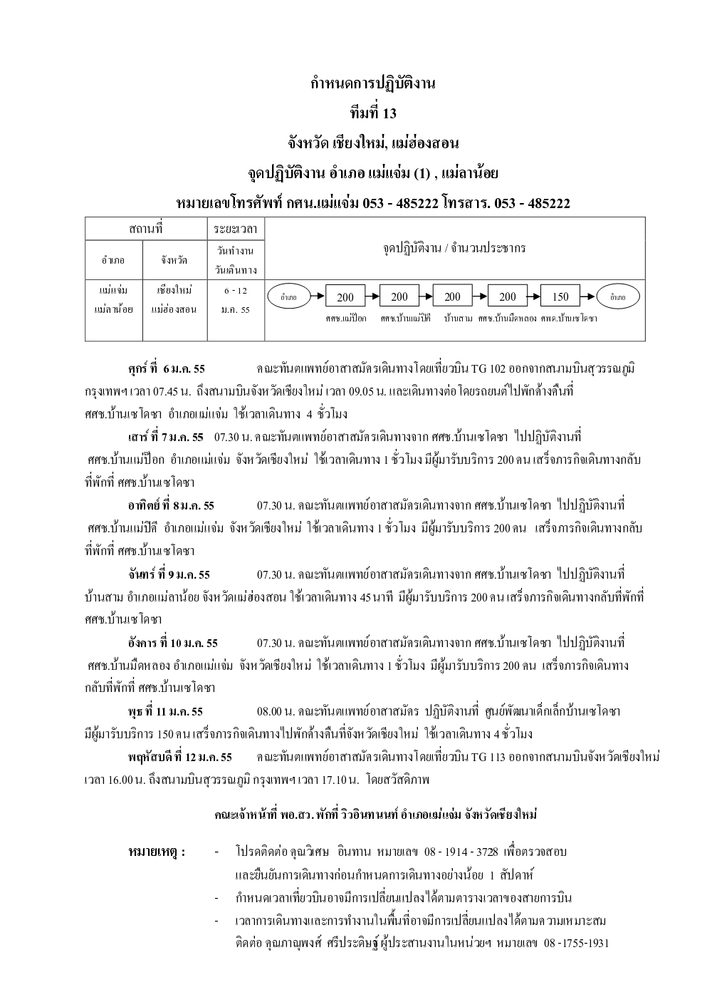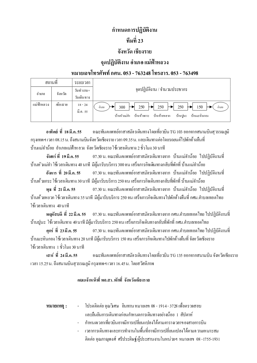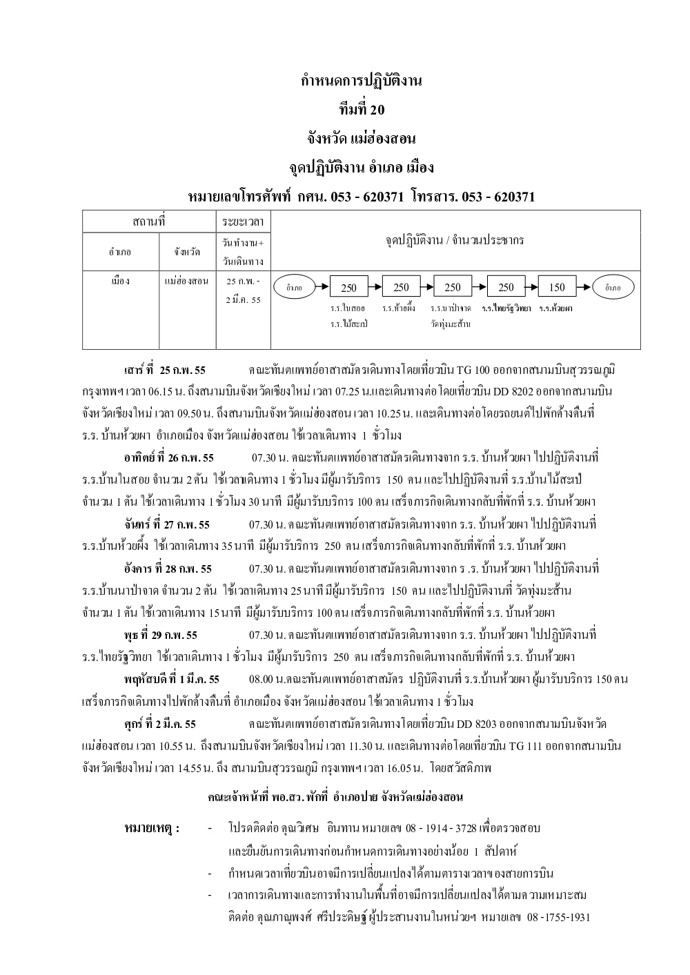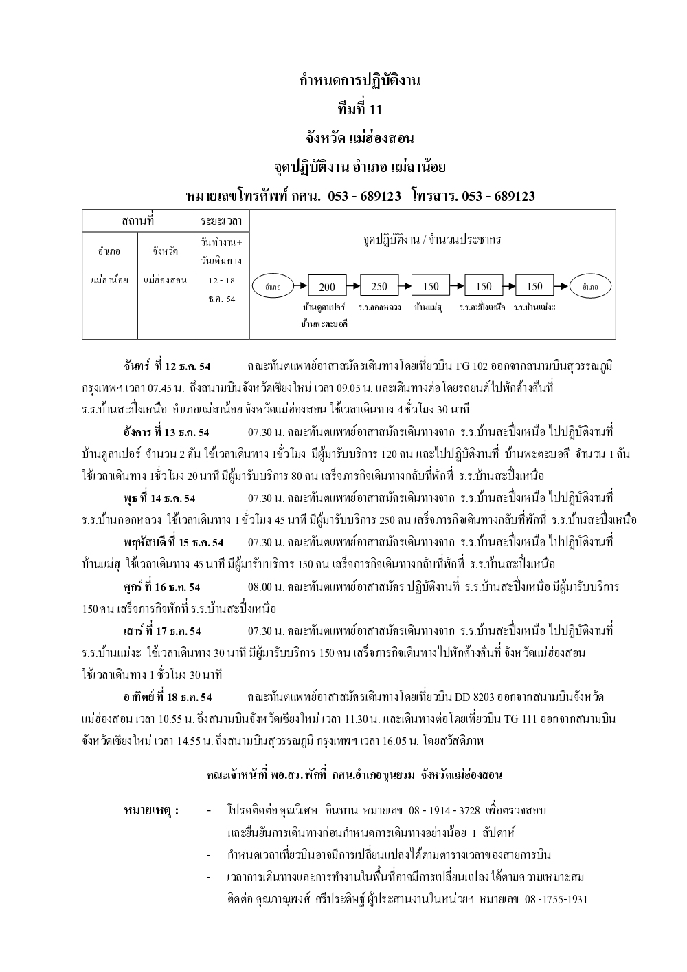 หมายเหตุ แผนปฏิบัติงานอาจมีการเปลี่ยนแปลง ตามความเหมาะสม