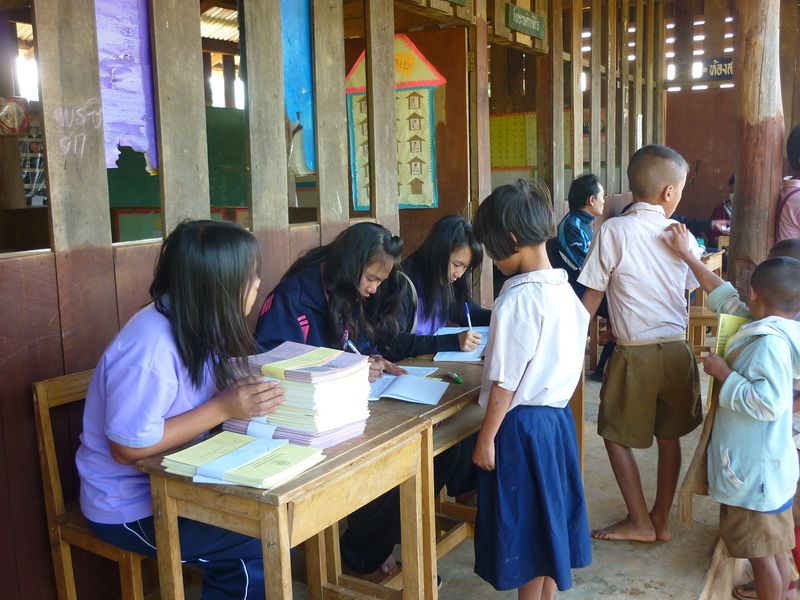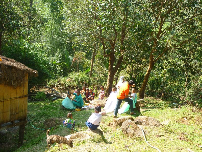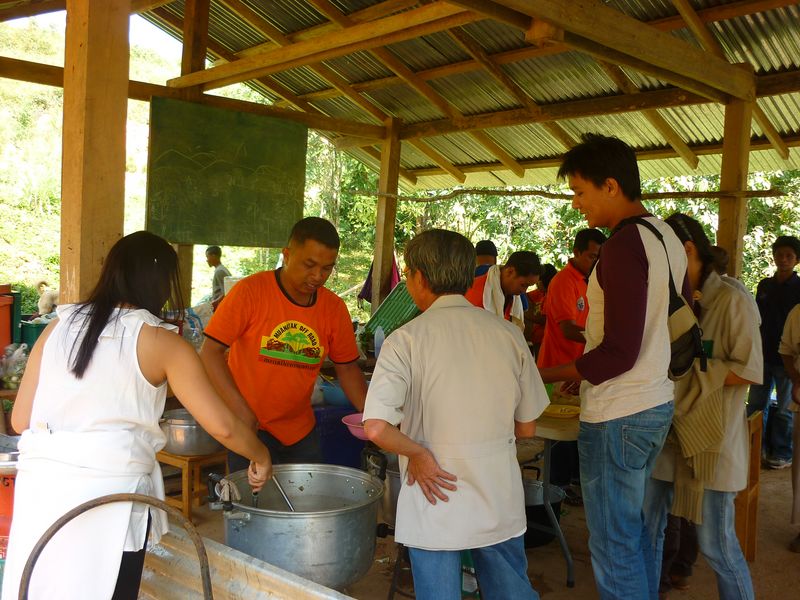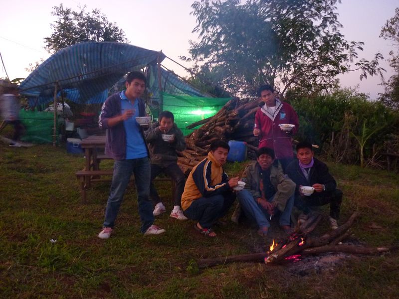 เลี้ยงข้าวมื้อกลางวัน ชาวบ้านที่เฮียย้งไปรับมาจากหมู่บ้านอื่น แล้วค่อยกลับไปส่ง