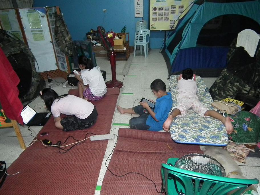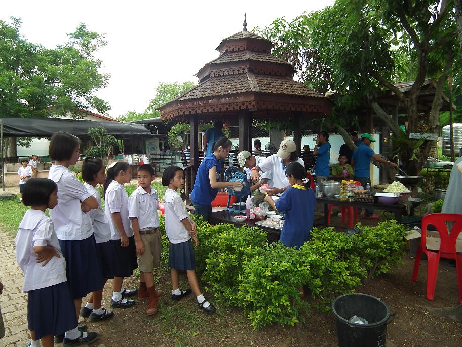 ทางนี้ก็เตรียมอุปกรณ์ เพื่อทำอาหารเลี้ยงเด็กๆ