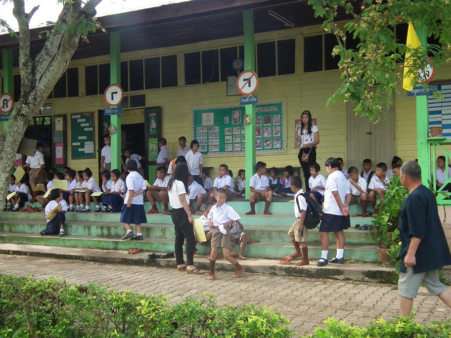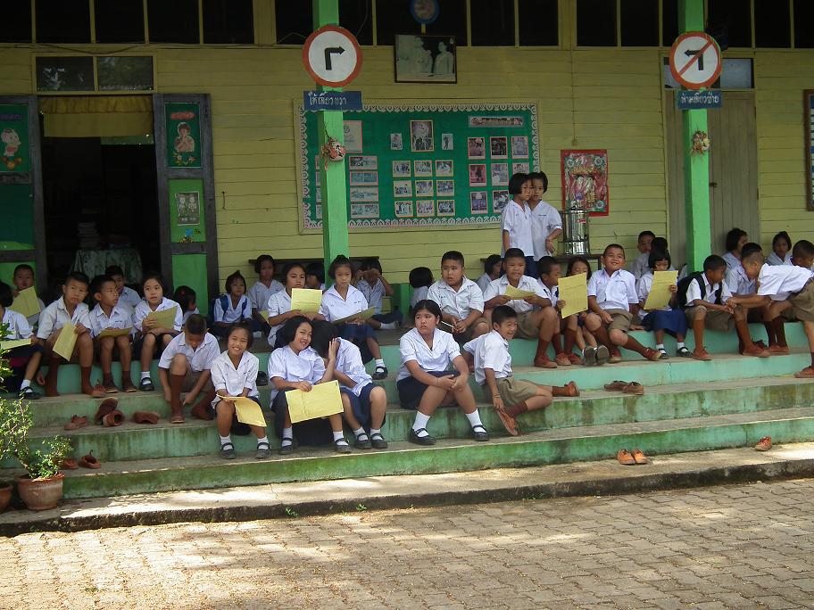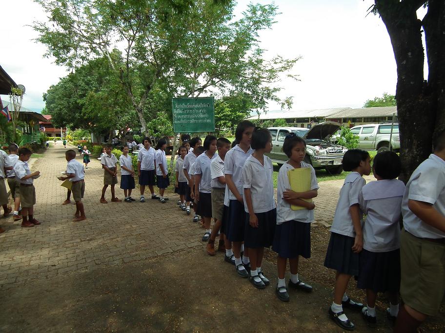 คุณครู ก็เตรียมจัดแถวและเอกสารไว้ให้เด็กนักเรียนครับ