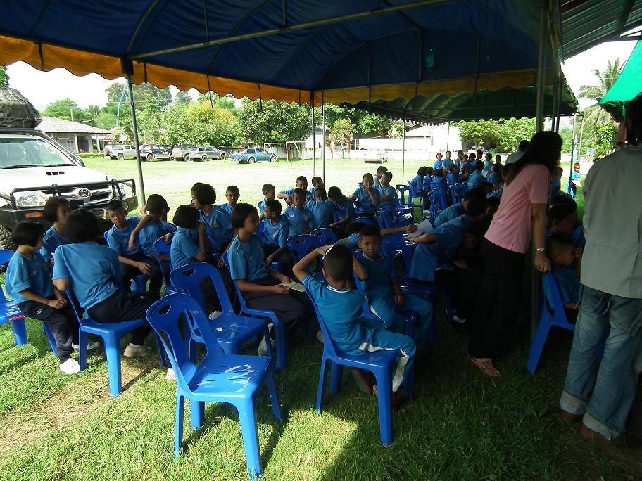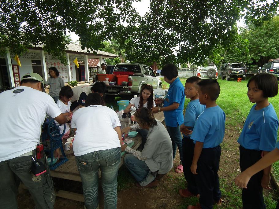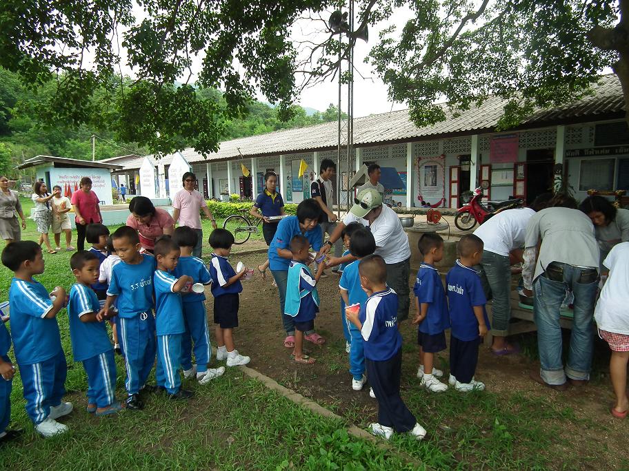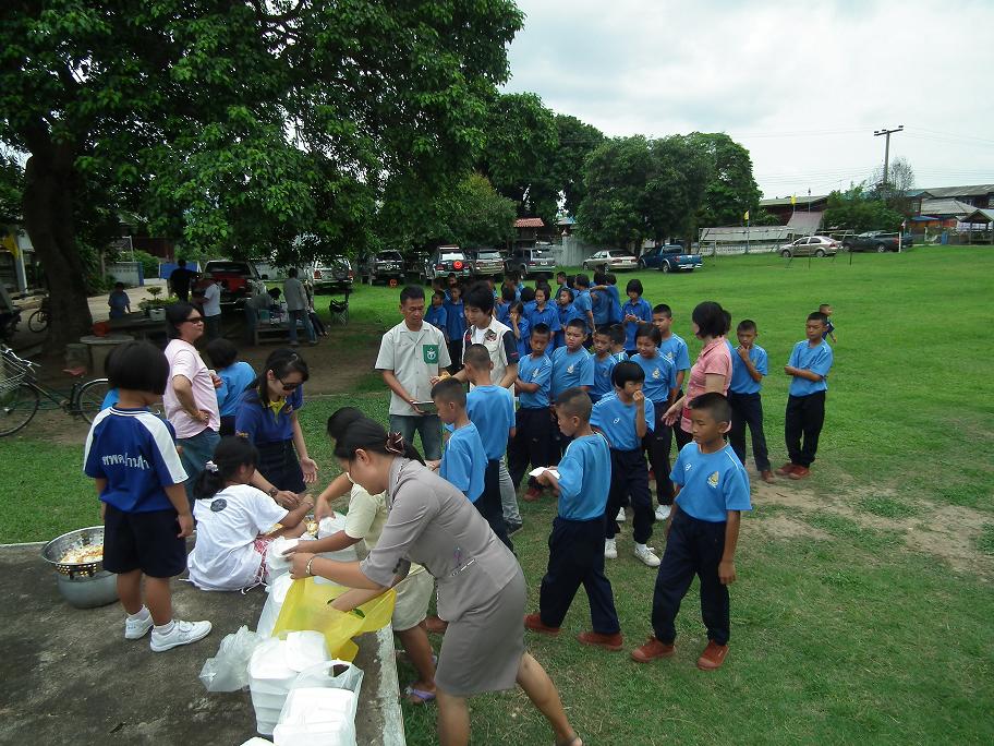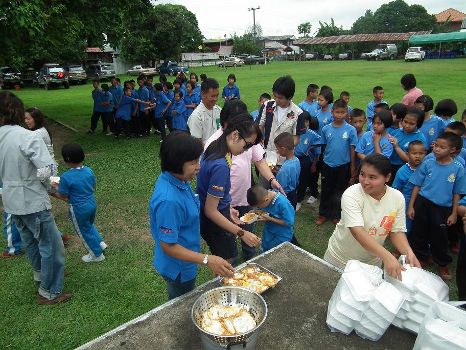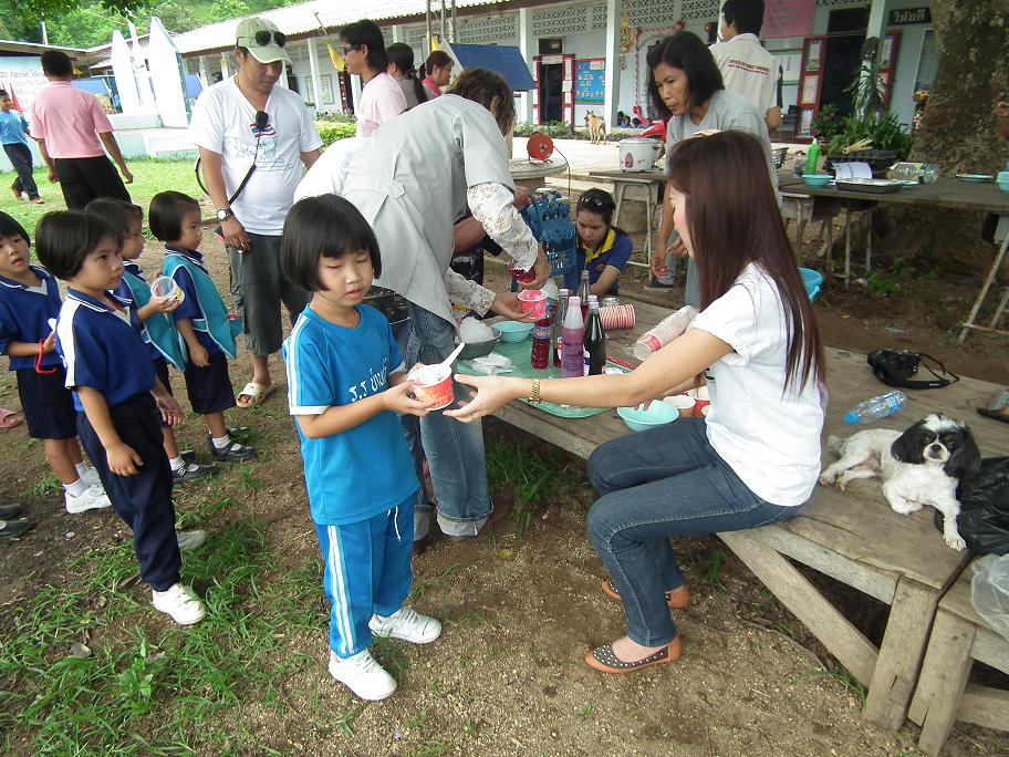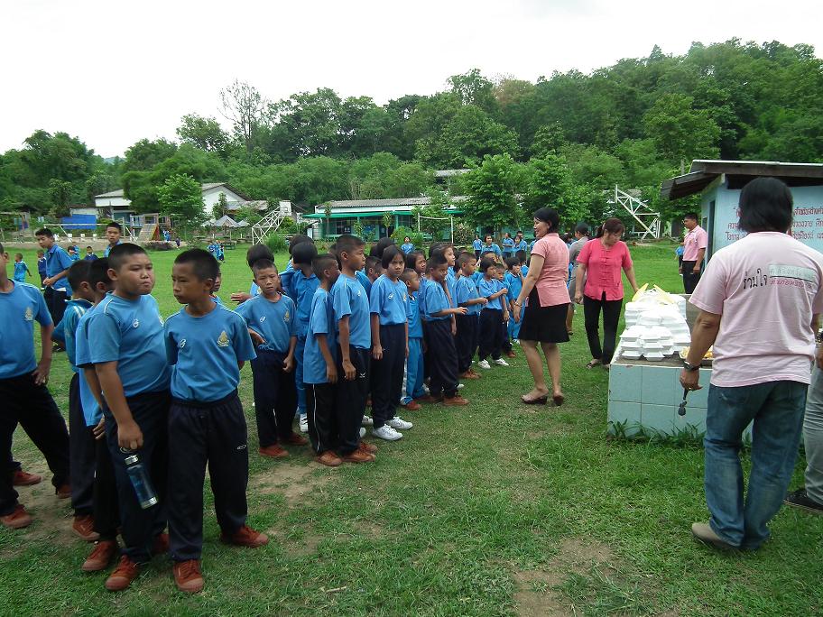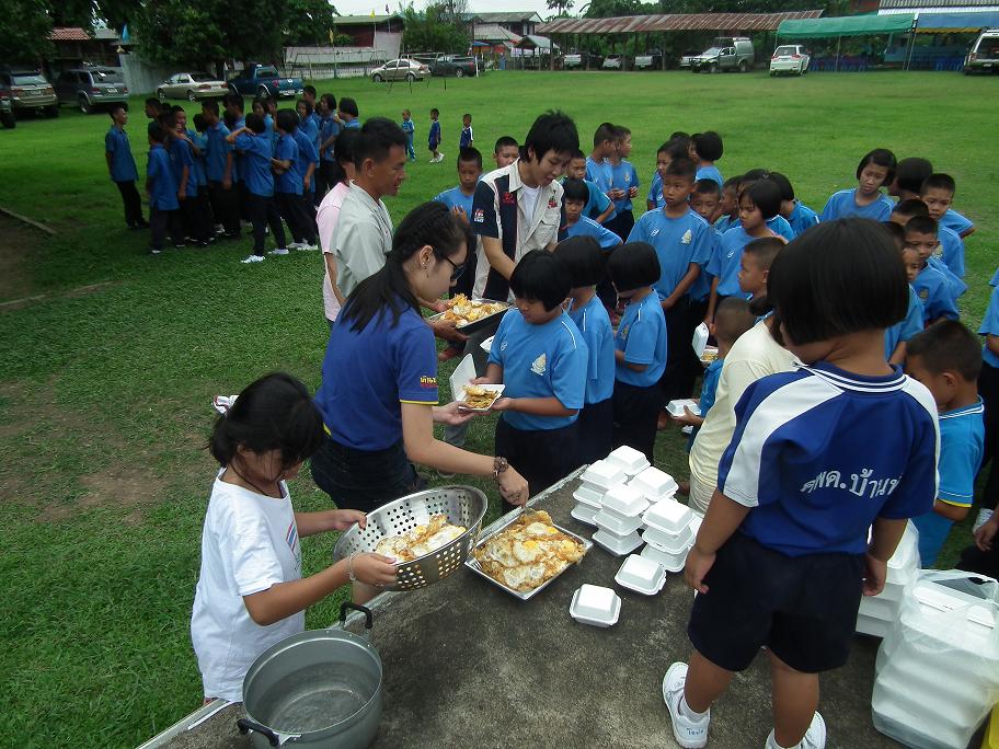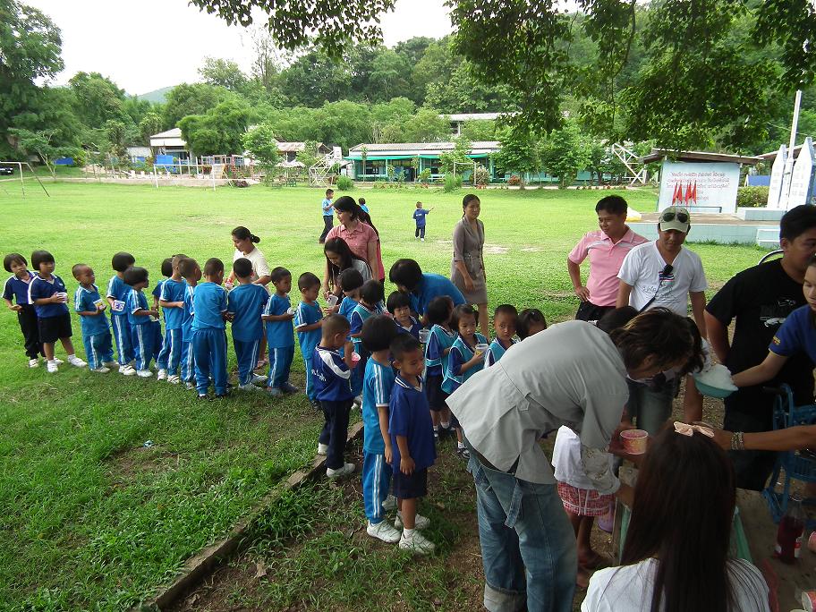 หลังจากทำฟันกันบ้างแล้ว น้องๆก็เข้าแถวเตรียมรับอาหารกันครับ