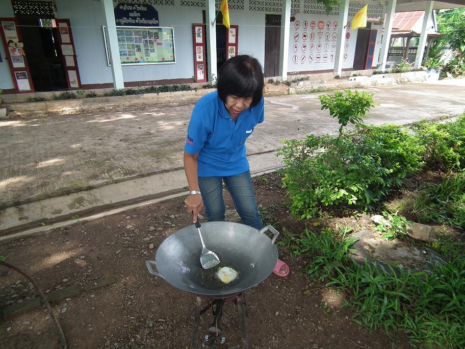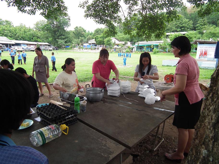 คุณครูก็มาช่วยจัดไข่ดาวใส่กล่องไว้ให้กับเด็กๆที่กำลังทำฟันอยู่