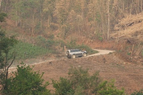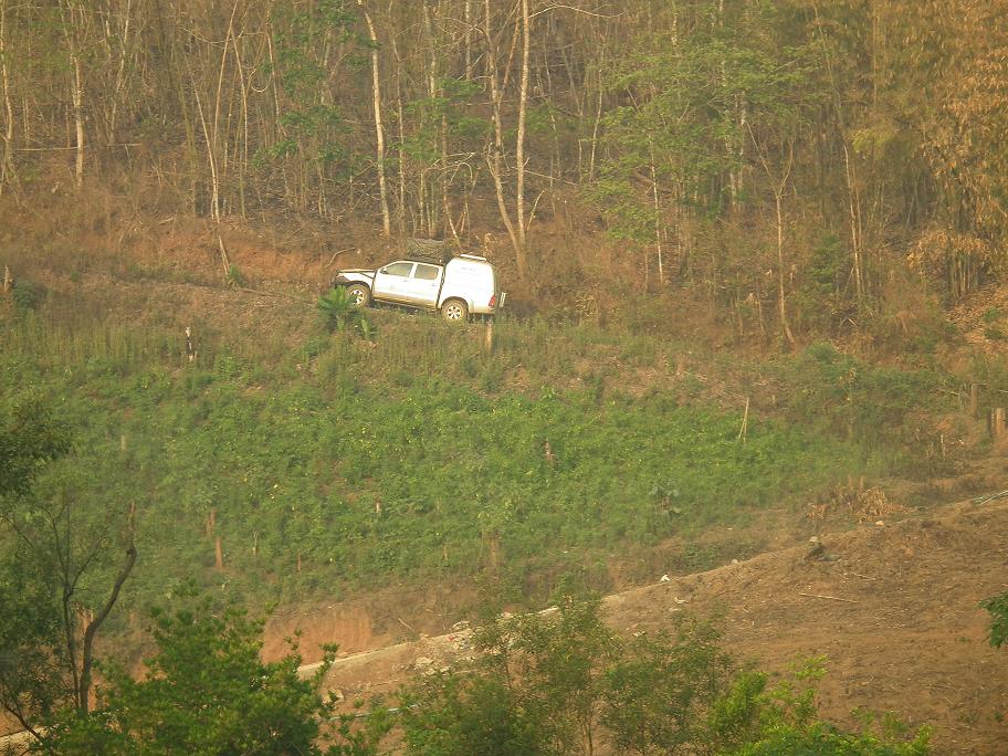 ถึงตรงนี้ เราจะแยกเป็นสองขบวนครับ ขบวนแรกรถทันตกรรมสองคันพร้อมคุณหมอไปโรงเรียนบ้านธงชัยบน ขบวนที่สองรถทันตกรรมหนึ่งคันพร้อมคุณหมอแยกไปโรงเรียนบ้านธงชัยล่าง