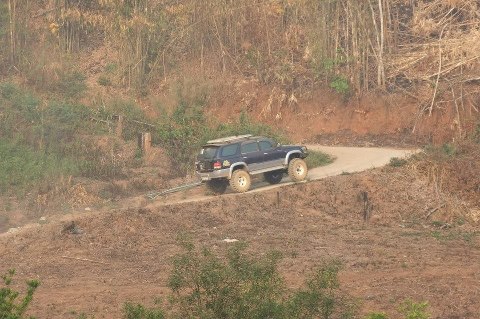 เนื่องจากเส้นทางที่จะไปบ้านธงชัยบน เป็นทางชันและแคบ เราจึงต้องทยอยค่อยๆไต่ขึ้นไปที่ละคัน