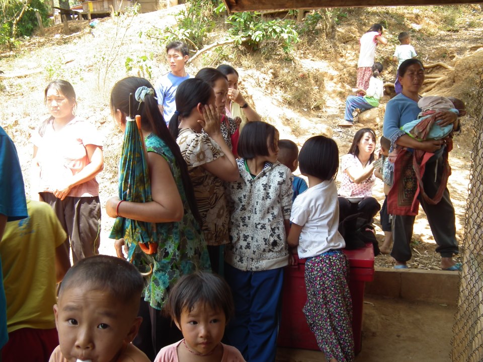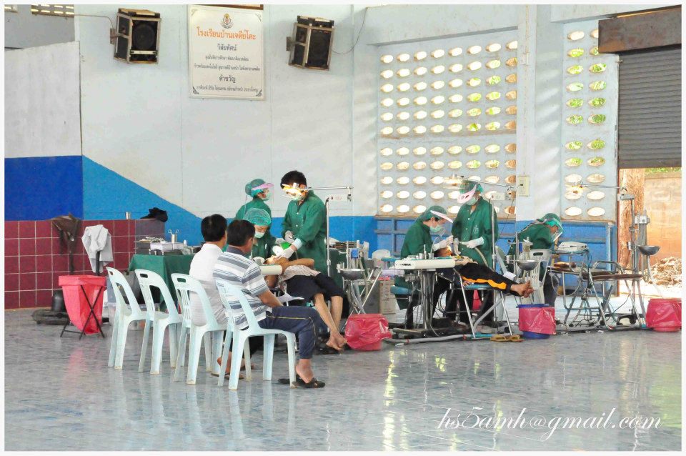 ชาวบ้านนั่งรอ ทำฟันที่ โรงเรียนเจดีย์โคะ