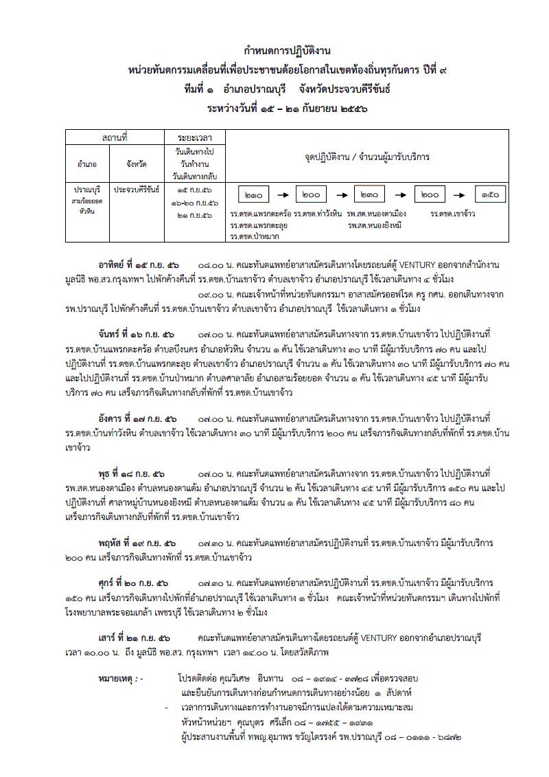 หน่วยทันตกรรมเคลื่อนที่เพื่อประชาชนด้อยโอกาสในเขตท้องถิ่นทุรกันดาร มูลนิธิ พอ.สว.ปีที่ ๙ ทีมที่ ๑ ออกให้บริการใน อ.ปราณบุรี จ.ประจวบคีรีขันธ์ ระหว่างวันที่ ๑๕-๒๑ กันยายน ๒๕๕๖