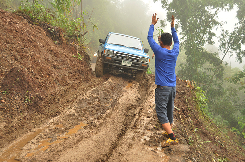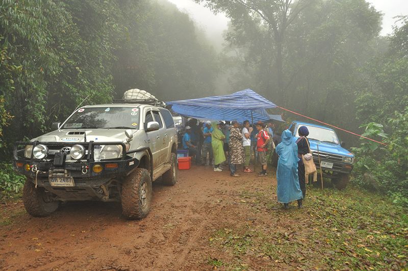 มีรถขึ้นไปรับคณะหมอสามคันทางข้างบนแคบมากๆ