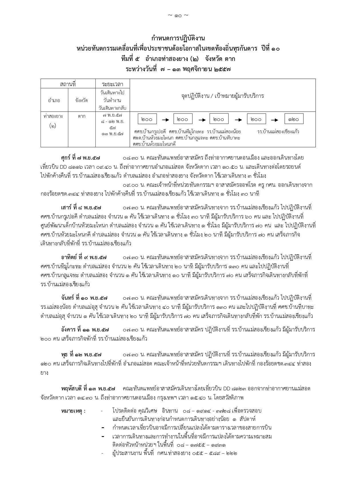 แผนหน่วยทันตกรรมเคลื่อนที่เพื่อประชาชนด้อยโอกาสในเขตท้องถิ่นทุรกันดาร ปีที่ ๑๐