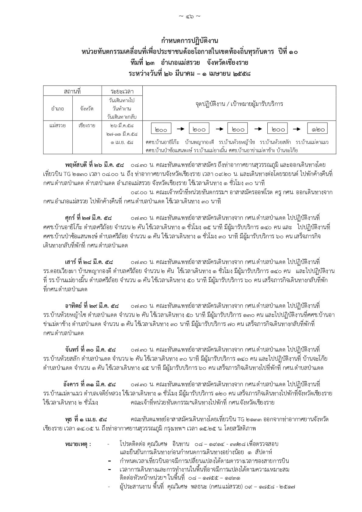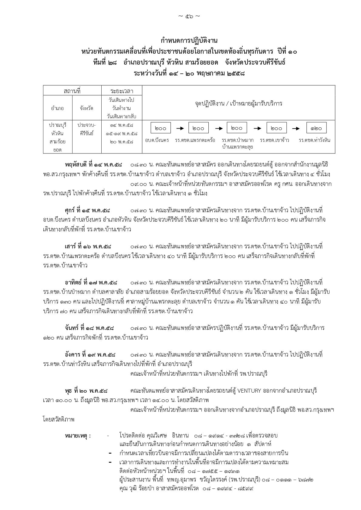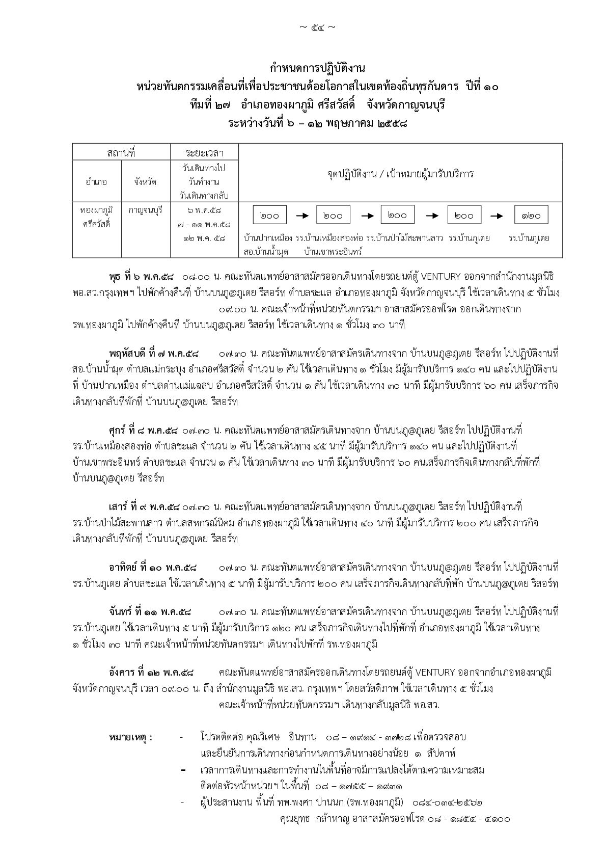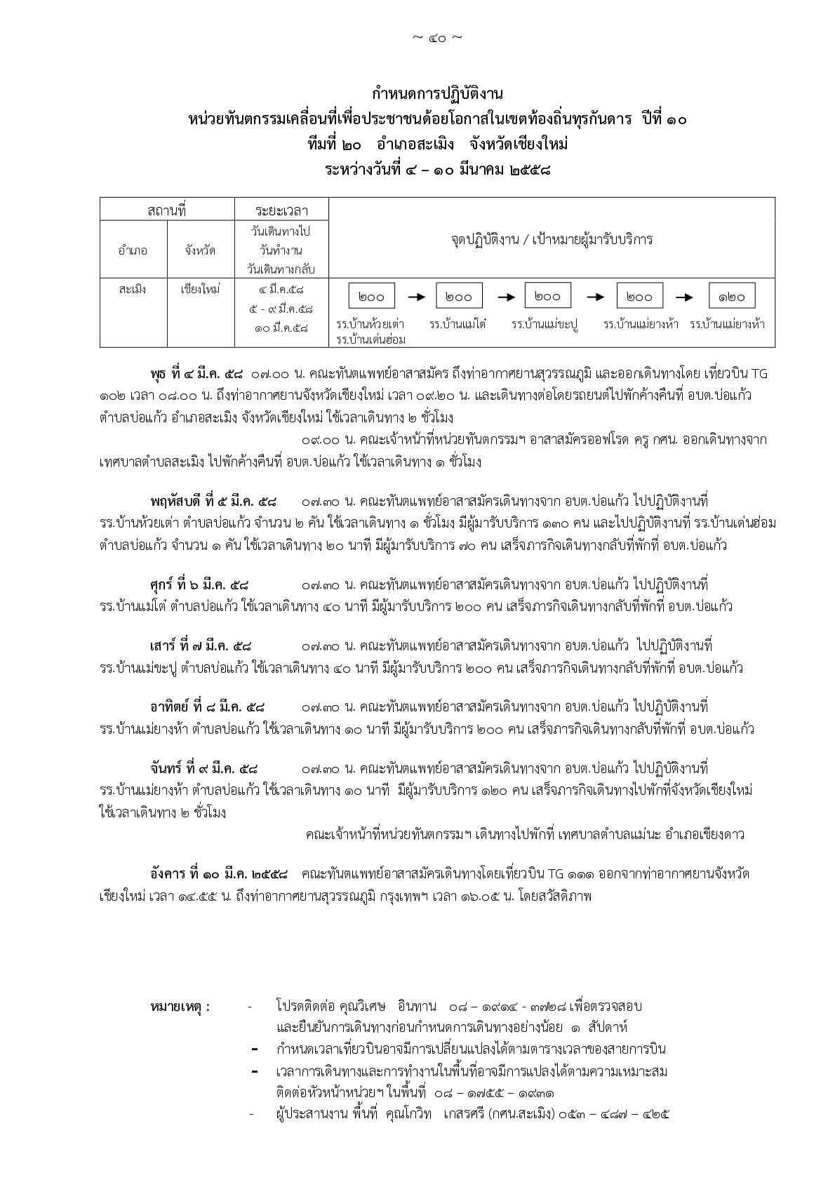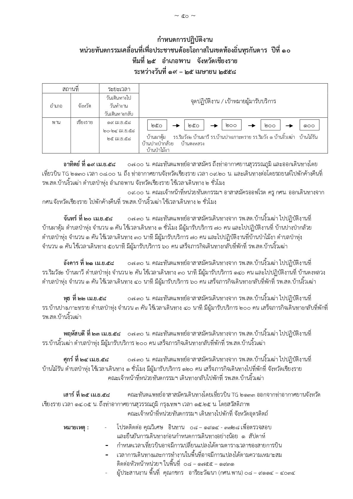 แผนหน่วยทันตกรรมเคลื่อนที่เพื่อประชาชนด้อยโอกาสในเขตท้องถิ่นทุรกันดาร ปีที่ ๑๐