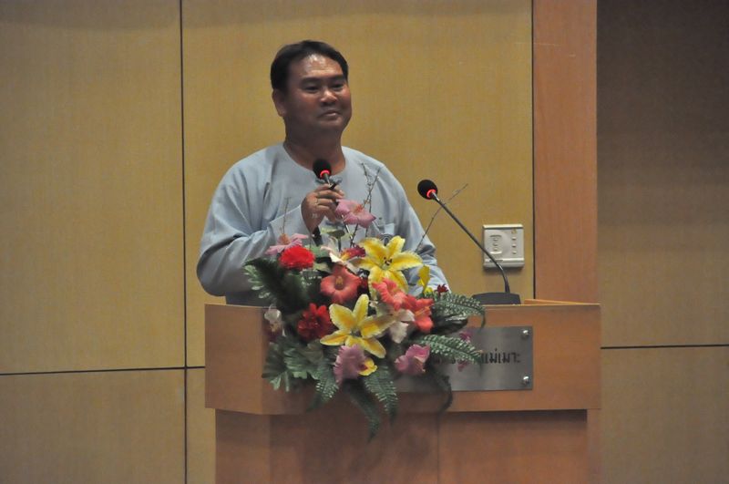 นพ.สมชาย เชื้อเพชระโสภณ ผู้ช่วยเลขาธิการมูลนิธิ พอ.สว.สรุปและกล่าวปิดประชุม