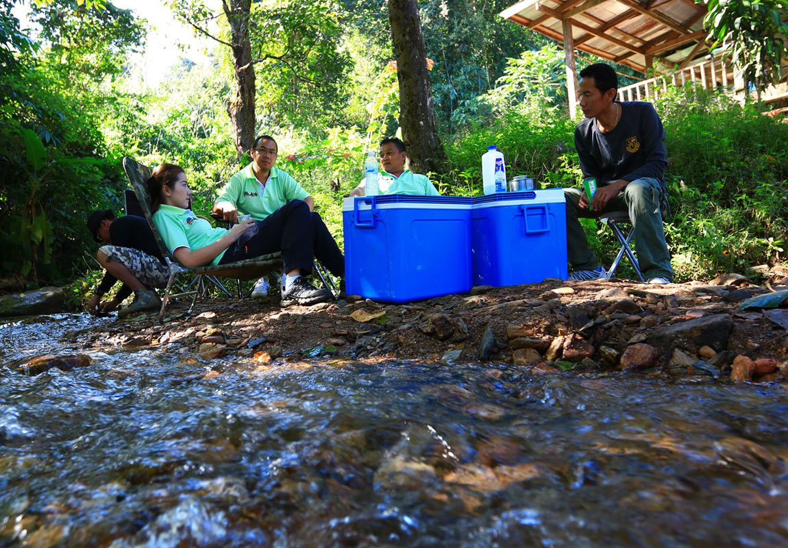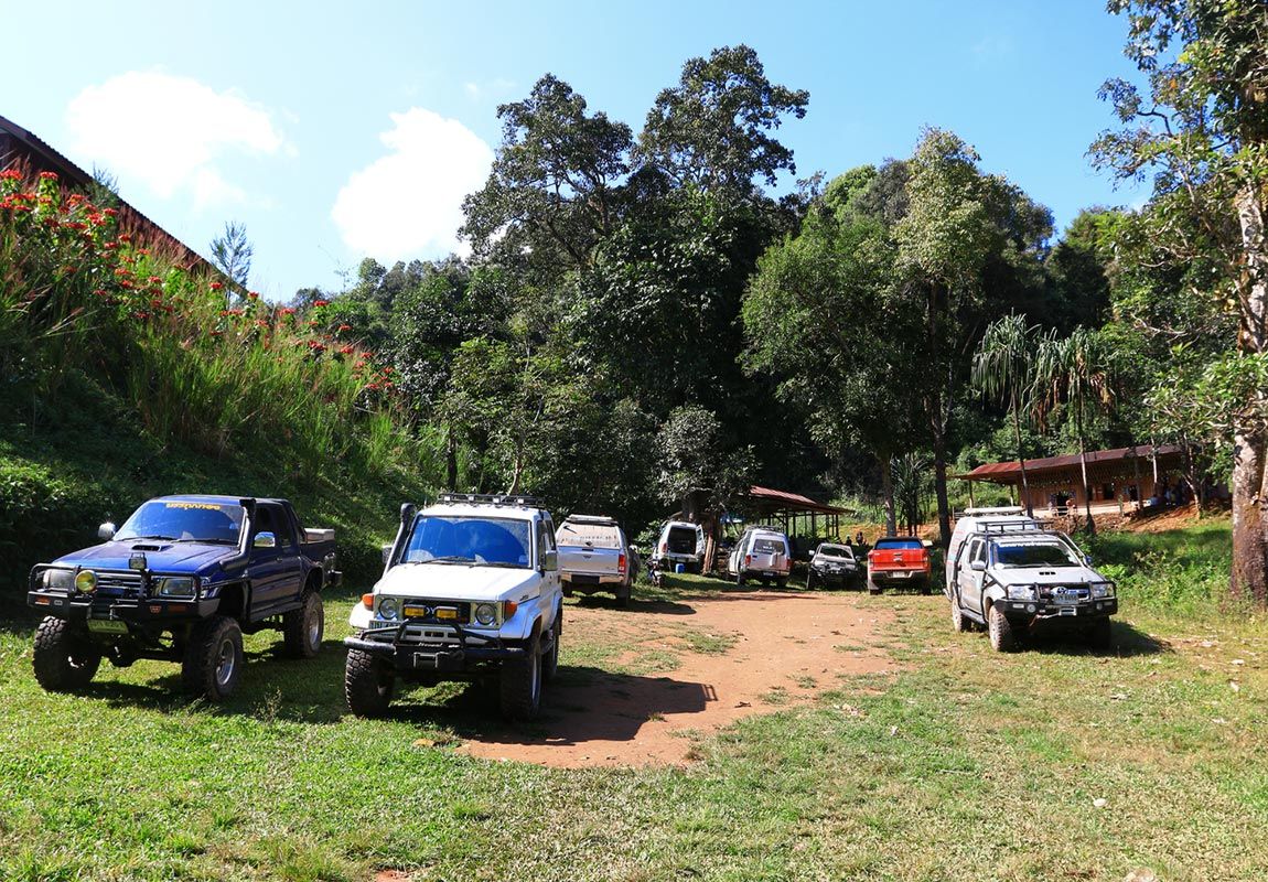 กลุ่มคณะออฟโรดที่เสร็จสิ้นภาระกิจวันนี้ระหว่างรอนำขบวนคุณหมอและเครื่องมือแพทย์กลับบ้านแม่อมกิ