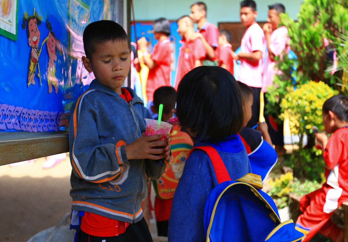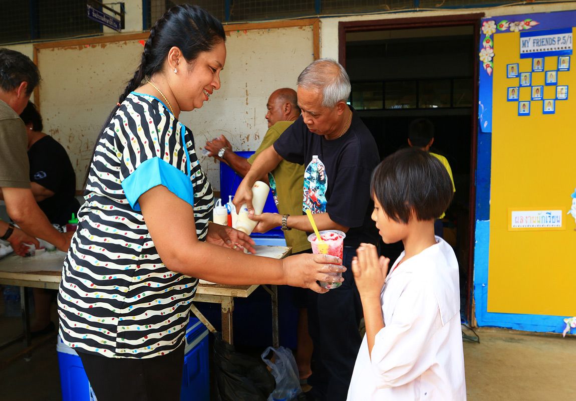 ทั้งเด็ก ผู้ใหญ และคณะทำงานท่าสองยาง 3 ได้ทานน้ำแข็งไสกันทั่วหน้า