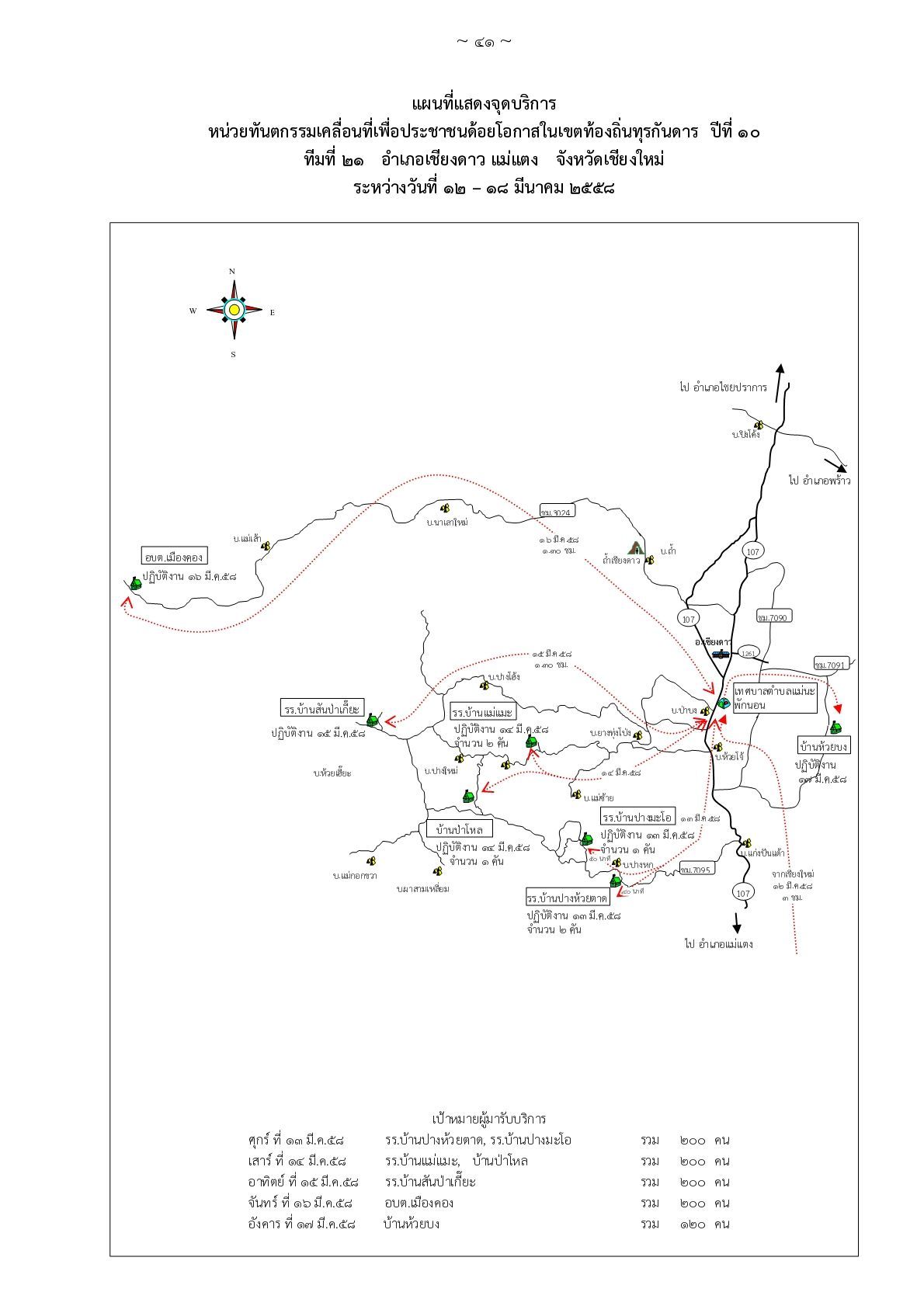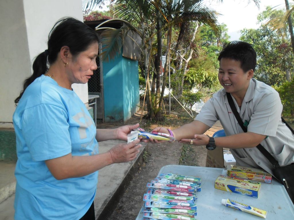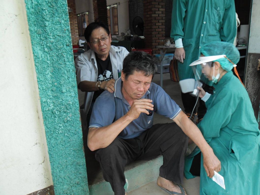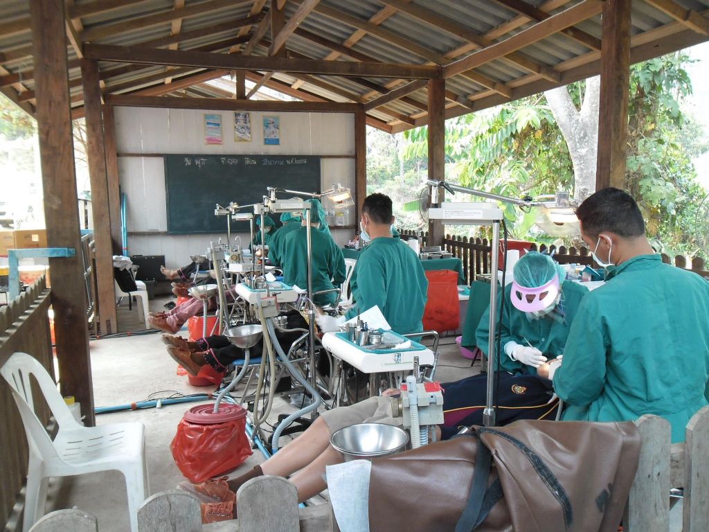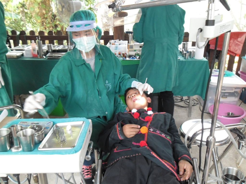 วันที่ 13 มีนาคม หน่วยทันตกรรมเคลื่อนที่ ฯ ปฏิบัติงาน ๒ หมู่บ้าน แยกรถไปวัดปางมะโอ ๑ คัน วัดนี้มีพระธาตุ ๑ องค์ แต่มี ๓ เงา จึงเรักว่าพระธาตุ ๓ เงา ตามภาพครับ หมู่บ้านนี้เป็นหมู่บ้านขนาดใหญ่มาก่อน อดีต ๓๐๐ หลังคาเรือน ปัจจุบันเหลือ ๘๐ หลังคาเรือน เป็นหมู่บ้านเก่าแก่ ประชาชนนับถือศาสนาพุทธ และเป็นวัดที่ครูบาศรีวิชัยมาสร้างไว้ครับ มีผู้มารับบริการ ๔๘ คน อีกหมู่บ้านหนึ่งรถทันตกรรมไป ๒ คัน คือบ้านห้วยตาด หมู่บ้านนี้พระบาทสมเด็จพระเจ้าอยู่หัว และสมเด็จพระนางเจ้าพระบรมราชนีนาถ เคยเสด็จมาครับ มีประชาชนมารับบริการ ๑๔๐ คน รวม ทั้งหมด ๑๘๘ คน ขอต่ออีกนิด ผมไปเยี่ยมผู้ป่วยติดเตียง ๒ รายครับ คนแรก ผ่าตัดกระดูกสันหลังมาได้ประมาณ ๔ เดือน ยังมีอาการปวดชาที่ขาชวา อายุ ๖๔ ปี ส่วนอีกคนหนึ่ง อายุ ๗๒ ปี เป็นโรคมะเร็งที่กล่องเสียง ผ่าตัดแล้ว สื่อสารกับญาติและสามีด้วยการเขียนหนังสือครับ เป็นเคยเป็น อสม.มาก่อน อาศัยพึ่งพาหลานชาย สามีอายุ ๘๐ ปี ลูกชายและลูกสะใภ้คอยดูแร ครับ