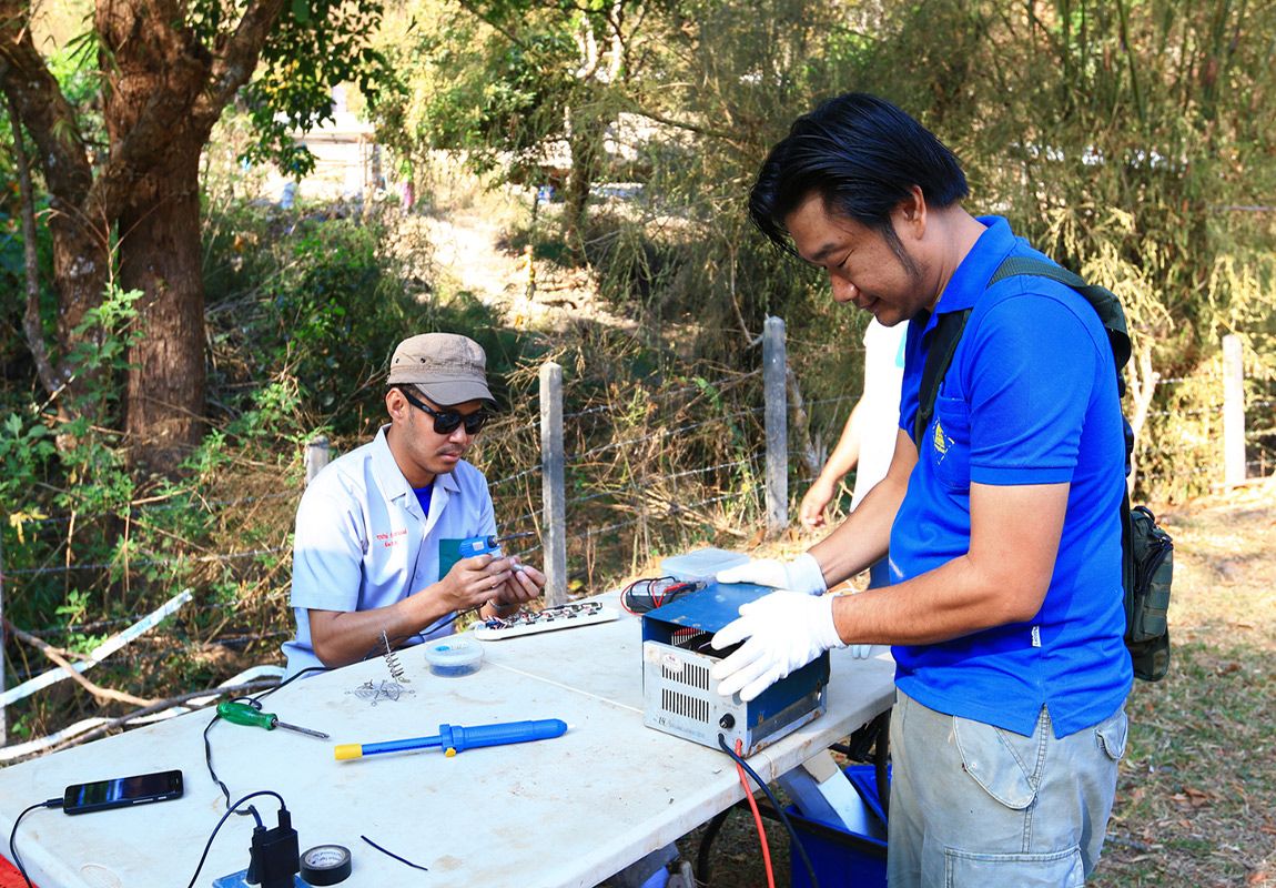 ตรวจเช็คอุปกรณ์ที่จะทำการซ่อมให้กับชาวบ้าน