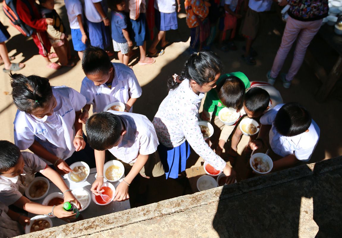 พี่คับ ผมหิวแล้วคับ กินได้รึยังคับ หนึ่งในเด็ก 3 ที่ยืนมองเราจัดเตรียมอยู่ เราเลยจัดให้