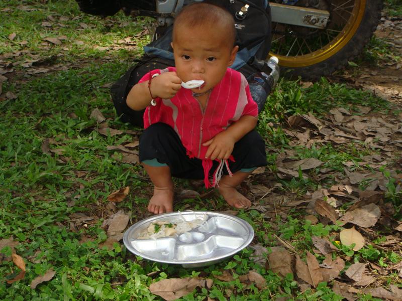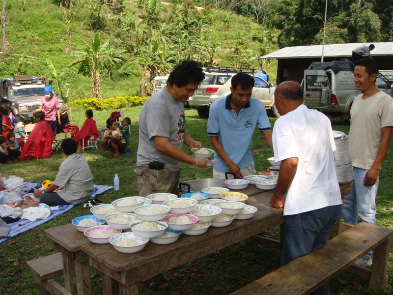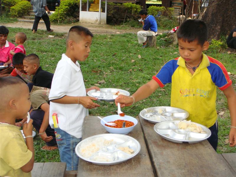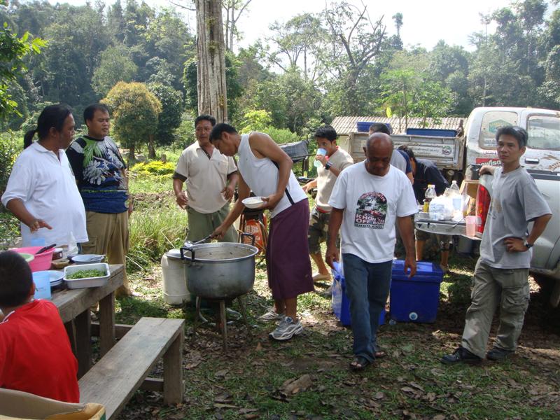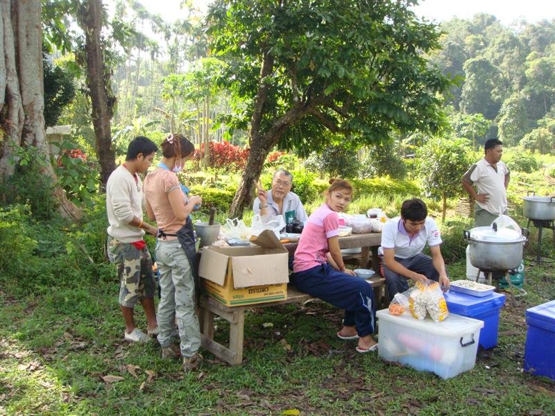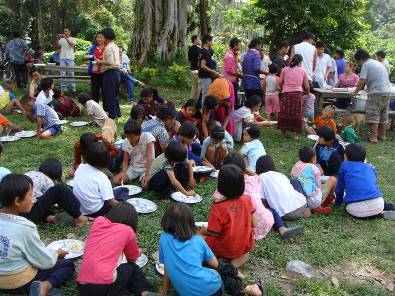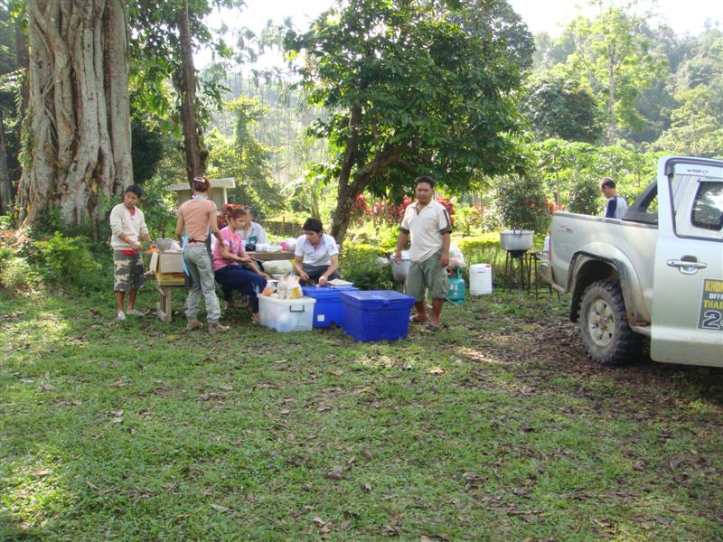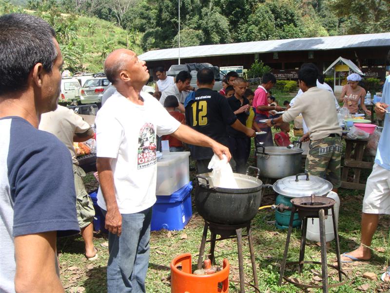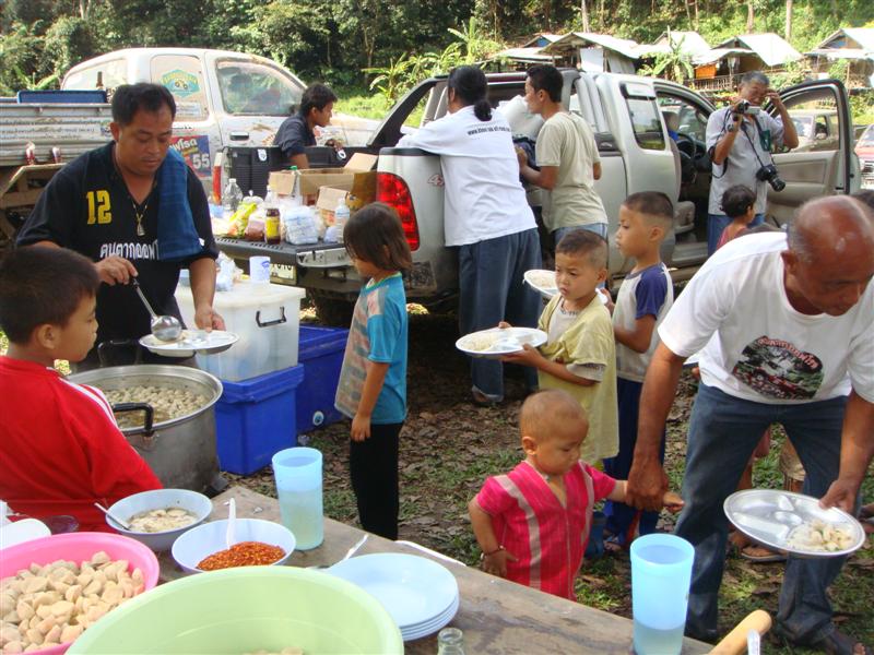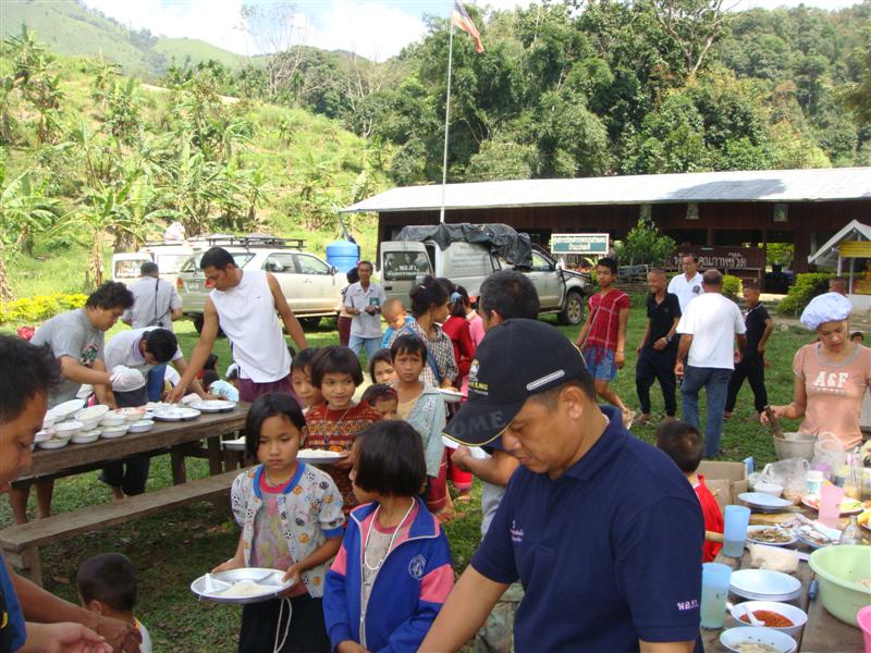 ทีมงานเตรียมอาหารกลางวันเด็กและชาวบ้านน่าจะมีสองร้อยคนขึ้นนะครับ
