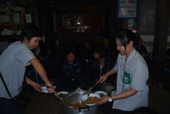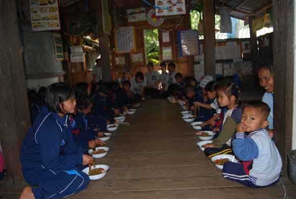 นึกถึงเมื่อครั้งไปทานอาหารกับน้องที่ขุนห้วยนกกก อ.ท่าสองยาง พี่น้องชาวออฟโรดได้นำเส้นหมี และวุ้นเส้นสำเร็จรูปไปแจกเด็กๆรับแกะกิน...แต่กินไม่ได้เพราะมันเหนียว เด็กๆก็มองหน้าคนให้ด้วยสายตาว่า"หลอกเขารึเปล่า?" จริงแล้วมันต้อง"ต้ม"ก่อนครับ จึงจะทานได้ พอมาถึงวันนี้ ทีมงานจึงผัดเส้นหมีให้เด็กๆทาน ครับ