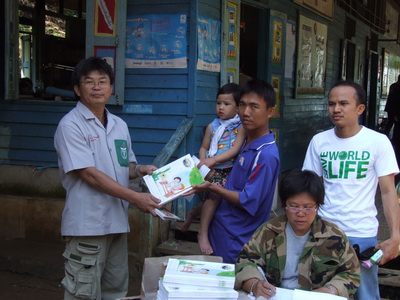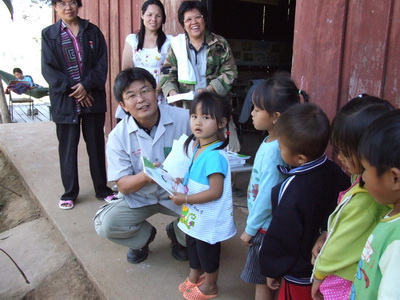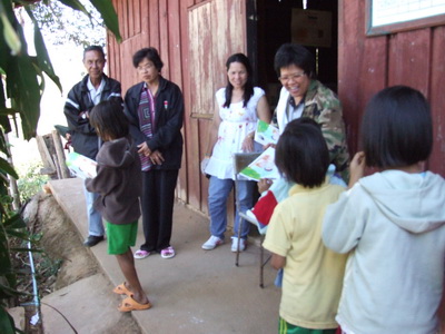 แจกสมุดให้กับครูนำไปแจกเด็กนักเรียนบ้านแม่แจะ