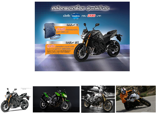 วาสลีนเมน เค้ากำลังจัดกิจกรรมสำหรับคนเท่ห์ๆ ที่ชอบความเร็ว เพราะว่าตอนนี้เค้ากำลังมีกิจกรรม แจกฟรี!! ของรางวัลเป็นกระเป๋าสะพายข้างพร้อมลุ้นรับมอเตอร์ไซค์ Yamaha FZ8 มูลค่า 480,000 บาท เพียงแค่ซื้อผลิตภัณฑ์สูตรใดก็ได้ของ Vaseline Men จากร้านค้าที่ร่วมรายการครบ 299 บาท