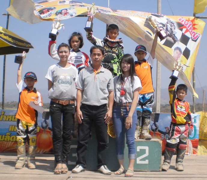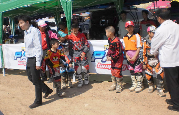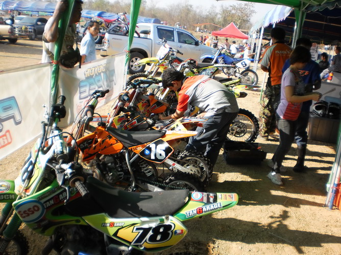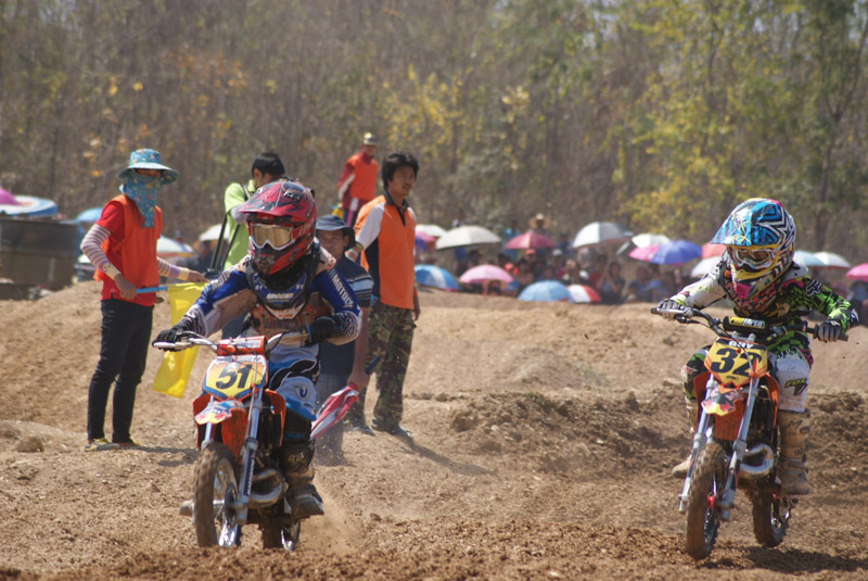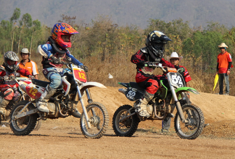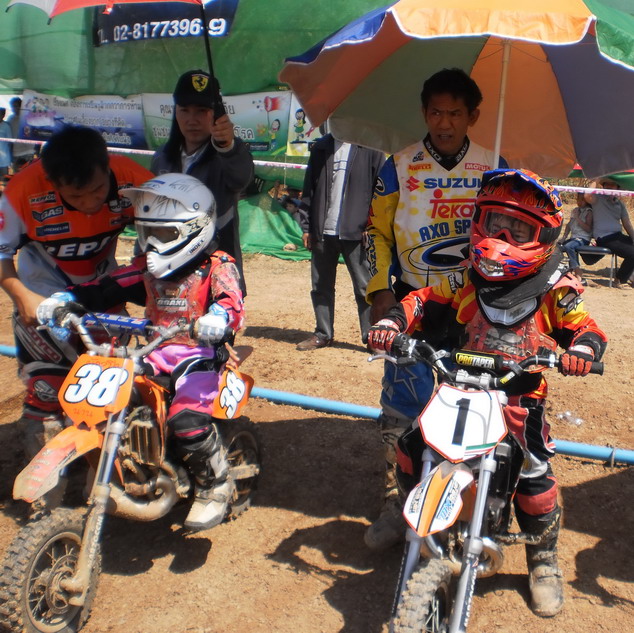 นี่ก็รุ่นเล็กครับ KLX .... จากภาพ"น้องมอส 12" นักแข่งฟอร์มแรงตัวเล็กจิ๋วจากเมืองฝางที่กำลังเก็บเกี่ยวประสบการณ์ กำลังไล่บี้รุ่นพี่อย่าง"น้องขุน 52" ลำปาง...แต่กระดูกยังต้องเสริมแคลเซี่ยมอีกสักนิด มีสิทธิ์สู้รุ่นพีรายนี้ได้ครับ...