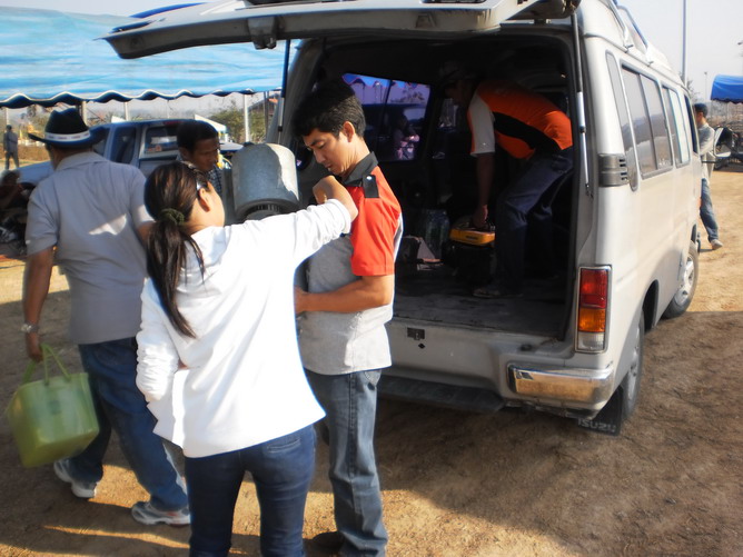 นี่ก็พี่ใหญ่ของทีมงานครับ "ป๋าแทน"(หันหลังให้นั่นแหละครับ)กำลังหิ้วสัมภาระของลูกชายคนโปรด "วุฒิพงษ์" และช่างแป๊ะผู้ประสานงานของทีมครับ....