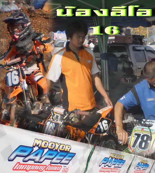 ซ้ายมือนี่ก็ "ป๋าน้อย" อดีตนักแข่งฝีมือดีของลำปางครับ วันนี้ก็มาทำหน้าที่ผู้ดูแลน้องๆนักแข่งในทีม ทำเอาเจ้าตัวเหนื่อยขึ้นอีกเยอะเลย...เจอเข้าซัก 5 งานน้ำหนักคงลดไปเยอะล่ะป๋า...ทนเอา... ทนเอา.... ตอนนี้ก็มีลูกชาย/ลูกสาวเพิ่มเข้ามาให้ดูแลในทีมงานอีกหลายคนแล้วป๋า...555 555