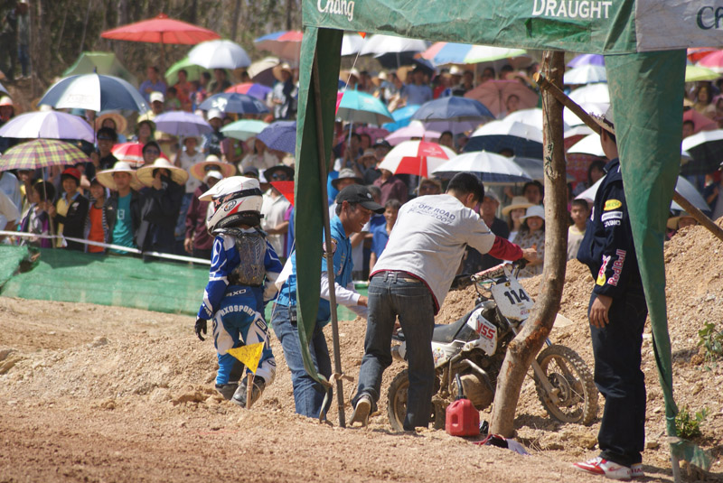 ที่ประคองรถไม่ได้ก็ลงเนินไปคลุกฝุ่น ทำเอาพี่เลี้ยงไม่รู้ว่าของใครเป็นของใคร ช่วยกันอย่างวุ่นวายไปหมด...ก็ดีอย่างนี้แหละครับรุ่นจิ๋วนี้ต้องไม่เลือกลูกเราลูกเขา ช่วยได้ให้รีบช่วยก่อนครับ กลัวเด็กจะเสียกำลังใจแล้วจะท้อซะก่อนที่จะโตจ้า....