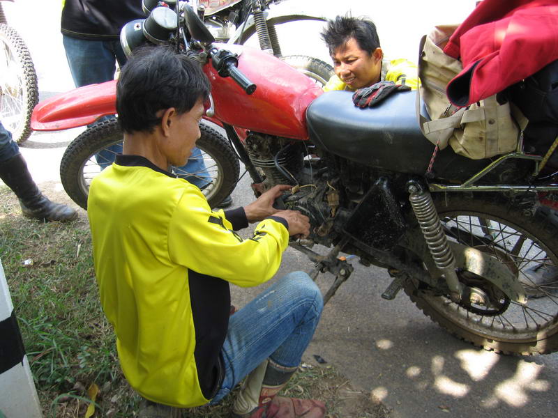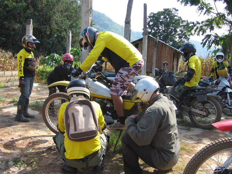 ซุ้มชัยนาท สายขี่เที่ยวนี้มากันสามคัน พี่หลอง ฉัตรชัย และน้องโต๊ด มาถึงมือจูนก็ได้งานเลย เปลี่ยนคอยให้กับ XL125 ของพี่หลองเอง คันนี้ไปขึ้นเขากระโจมมาแล้ว