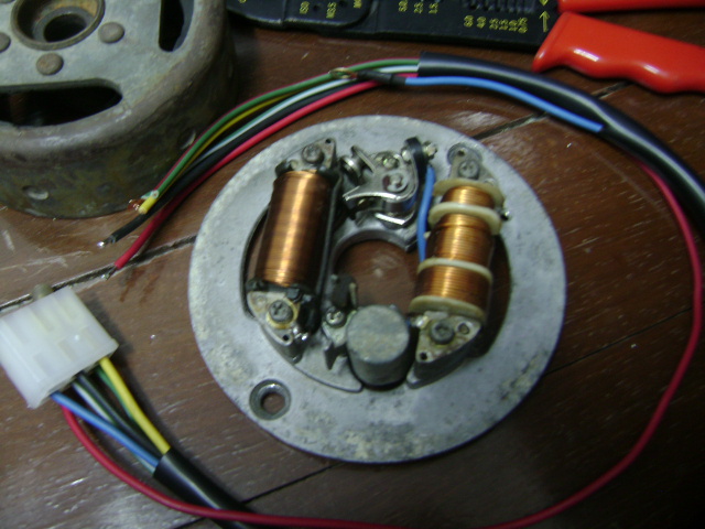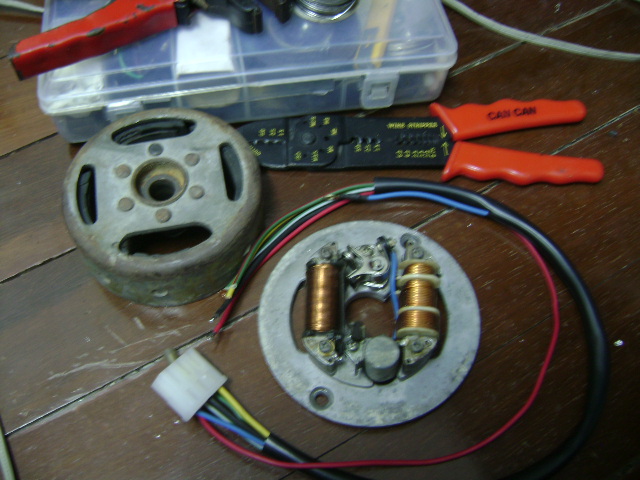 จัดแจงรื้อชุดไฟของ YAMAHA DT100X มาล้างทำความสะอาด แล้วจัดแจงเป่าลมให้สะอาดเพิ่มขึ้นอีก พร้อมนำมาผึ่งแดดเพื่อไล่ความชื้น