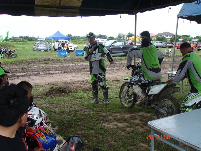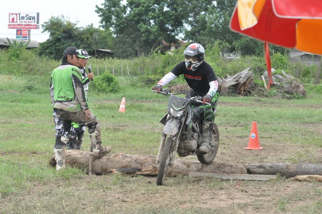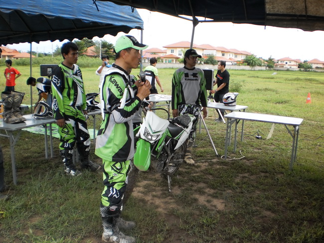 วันนี้ผมก็มีโอกาสได้นั่งฟังการอบรมและร่วมทดสอบ KAWASAKI KLX-150 ตัวนี้กระทัดรัดครับ คล่องแคล่วดีแต่....หากได้ยางโมโตมาใส่น่าจะมันส์กว่านี้ครับ แต่ก็ดีนะทำให้เราได้ฝึกหัดการควบคุมรถ โดยเฉพาะการไม่ใช้ครัช.....ต่อไปหากนำไปเปลี่ยนออฟชั่นเล็กๆน้อยๆก็คงเข้าสนามแข่งได้ยืนแป้นรับรางวัลแน่นอนครับ...