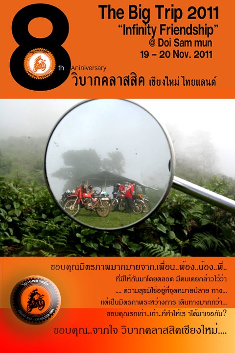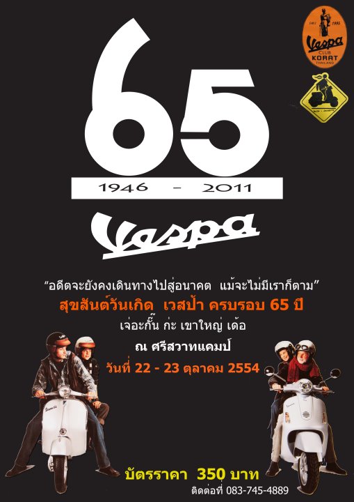 แจ้งข่าวงานเขาใหญ่พี่น้องที่ต้องการเข้าร่วมงาน ทางผู้จัดต้องการจำนวนผู้ร่วมงานเพื่อไปแจ้งยอดกับที่พักเพื่อจะได้เตรียมการในเรื่องเครื่องนอน และอาหารให้เพียงพอกับจำนวนผู้เข้าร่วมงาน(ตอนนี้ยอดของกลุ่มเวสป้าที่โอนเงินเกิน 300 คนแล้ว) สำหรับกลุ่มเราที่เป็นแขกรับเชิญทางเจ้าภาพขอให้แจ้งยอดที่แน่นอนภายในวันที่ 23 ก.ย. 54 เพื่อที่จะได้เตรียมกิ๊ฟเซ็ตได้ทันก่อนวันงาน ของที่จะได้ จากราคาบัตร 350 บาท เสื้อยืด 1 ตัว(มี 3 สี ขาว เขียว แดง) กระเป๋าผ้า 1 ใบ สติ๊กเกอร์รันนัมเบอร์กลุ่มเราเริ่มจาก300.1- 300.2- 300.3ไปเรื่อยๆ ป้ายทริป แม๊กเนต 1 อัน ที่พัก(เป็นห้องรวมห้องละ 15-20คน) อาหาร 1 มื้อเย็นวันเสาร์ เงินส่วนที่เหลือจากค่าใช้จ่ายนำไปทำบุญทั้งหมด ทริปนี้สำหรับกลุ่มเราจะเป็นทริปสำหรับครอบครัวไม่มีลุยหนักแวะเที่ยวตามสถานที่ท่องเที่ยวต่างๆ ของเขาใหญ่(ปาลิโอ สโมคเฮ้า เป็นต้น) เป็นทริปเบาๆเอาใจแม่บ้านบ้างก่อนจะจัดหนักในเดือนพฤษจิกา วันเสาร์ท่องเที่ยวเบาๆตกเย็นเข้าร่วมกิจกรรมกับกลุ่มเวสป้าบริจาคอุปกรณ์กีฬาให้กับโรงเรียนบ้านโนนสาวเอ้ สายๆวันอาทิตย์ขึ้นเขาใหญ่ฟังบรรยายจากเจ้าหน้าที่พิทักษ์ป่า บริจาคสิ่งของที่จำเป็นให้อุทยานเช่นถุงดำ(อาจจะมีอย่างอื่นอีกจะแจ้งให้ทราบในสัปดาห์หน้า)จากนั้นร่วมเก็บขยะสร้างภาพ ออกเที่ยวตามจุดท่องเที่ยวบนเขาใหญ่ แยกย้ายกลับบ้าน