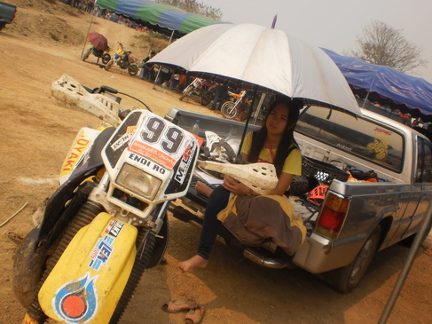 ส่วนนี่ก็ม้าศึกของอาจารย์โอ๋ลำปาง เพื่อนรักเราเอง แต่เอ....มีคนเฝ้าให้ซะด้วยสิ นั่งเฝ้าให้อย่างดี นานหลายชั่วโมง....ก็โถ...รถบรรทุก อ.โอ๋อยู่ในมุมที่น้องๆเค้ามองเห็นสนามได้ทั่วถึงนั่นเอง เจ้าของรถก็เลยใจดีอนุเคราะห์ให้นั่งซะเต็มที่เ่ลยนิ