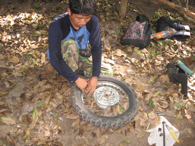 ยางรั่วครับ ไม่มีปัญหาเปลี่ยนแล้วก็ลุยต่อ แว้นๆๆๆๆ