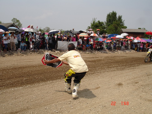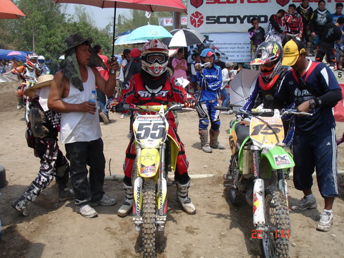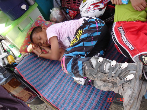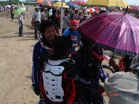 ยามเช้าหน้าตานักแข่งยังดูดี ไม่อ่อนล้าเท่าไร แต่ยามบ่ายวันนี้นี่สิครับ อากาศร้อนเกิน 40 องศาทำเอาแต่ละคนออกอาการหลังแข่งย่ำแย่ไปตามๆกัน จนคณะกรรมการต้องลดรอบการแข่งขันลงเกือบทุกรุ่นครับ เพื่อเซฟนักแข่ง เยี่ยมเลยครับทันเหตุการณ์ปลอดภัยไว้ก่อน