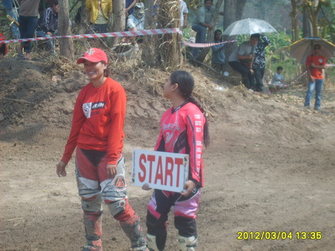 นักแข่งมีมากพอสมควรในวันนี้ ส่วนใหญ่จะเป็นระดับแชมป์ระดับประเทศ ระดับภาคกันทั้งนั้น มีแต่น้องอิมที่ยังไม่มีระดับกับเค้าในกลุ่มนี้ สนามที่มีความยาวมากกว่า 800 เมตรทางไซเคิลเป็นปัญหาอย่างหนัก เพราะไม่ได้เซ็ทรถมาเพื่อแข่งไซเคิล แต่ก็ยังพอได้ครับ.....น้องอิมบอกบิดหมดคันเร่งเลยมันก็เร่งได้แค่นี้แหละ....
