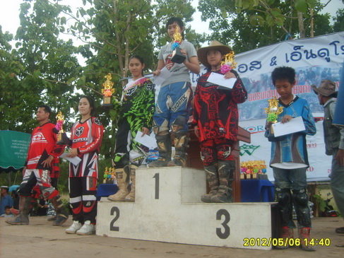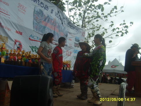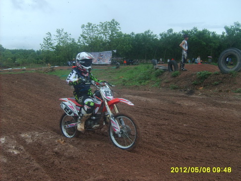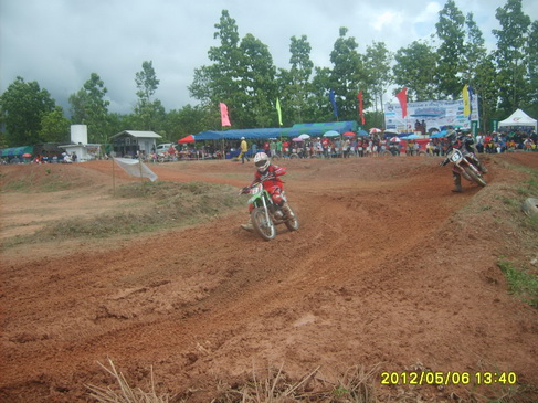 ทันทีที่เก็จสตาร์ทล้ม น้องตวงได้ออกนำไปยังโค้งแรกตามด้วยน้องจิ๊บ55 .....หมายเลย 18 และน้องอิม 8 ...ส่วนหลานสาวหนุ่มภูซางออกตัวเกาะกลุมไปในช่วงแรก เมื่อเข้าสู่เนินชุด 5 ชุด(10ลูก) น้องสิริยากรได้กระโดดนำไปด้วยมีน้องตวงตามไปติดๆ ส่วนน้องอิมยังคงรักษาตำแหน่งที่ 3 ไว้เ่ช่นเคย...โดยสามารถเข้าไปใกล้น้องตวงได้ในระนาดชุดแรก จากนั้นหมายเลย 18 ซึ่งไม่เคยเห็นฝีมือได้เร่ง CR-80 เข้ามาใกล้อย่างน่ากลัว.....การแข่งขันเป็นลักษณะนี้จนถึงรอบที่ 2 3 4 รถหมายเลข 18 ได้ไล่จี้หลังน้องอิมชนิดหายใจรดต้นคอเลยล่ะครับ... ล้อหน้าบังล้อหลังเป็นระยะๆ ทำให้น้องอิมที่ระวังเรื่องกระโดดต้องจำยอมกระโดดทุกเนินเพื่อหนี....จนครบ5 รอบ.