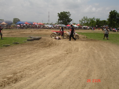 ระหว่างการแข่งขัน รถ 250F ของน้องเลดี้คันนึงเกิดอาการสะดุดไส้เดือนตัดหน้า ล้อหลังไม่สัมพันธ์กับล้อหน้าก็เลยพลิกกลางโค้งซะเลย....เดือดร้อน เจ้าหน้าที่ต้องเอาเปลมาพยุงออกไปครับ ....แต่ไม่เป็นไรมาก