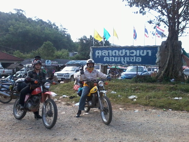 เราแวะที่ตลาดริมเมยสักพัก ได้รับการติดต่อทางโทรศัพท์จากน้องโอ๋ ซึ่งนำกลุ่ม sr400 มา 4 คัน แจ้งว่าให้ล่วงหน้าไปก่อนโดยไม่ต้องรอเพราะยังไม่แน่ใจว่าจะขึ้นไปนอนที่ดอยเปเปอร์หรือเปล่า